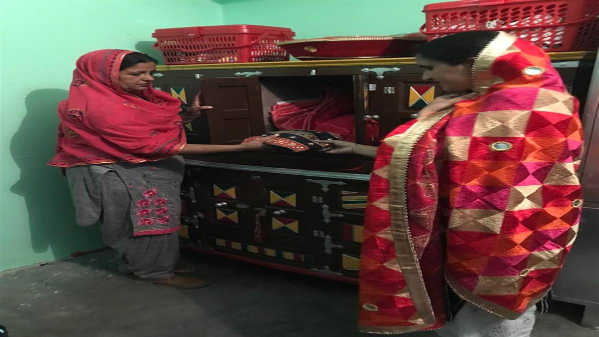 ਸਮ੍ਹਾਂ ਪਾ ਕੇ ਲੱਕੜ ਜਾਂ ਲੋਹੇ-ਇਸਪਾਤ ਦੀਆਂ ਪੇਟੀਆਂ ਦੇਣ ਦਾ ਰੁਝਾਨ ਹੋ ਗਿਆ। ਕੁੜੀ ਨੂੰ ਦਾਜ ਵਿਚ ਦਿੱਤੇ ਸੰਦੂਕ ਜਾਂ ਪੇਟੀ ਨੂੰ ਤਾਲਾ ਨਹੀਂ ਸੀ ਲਗਾਇਆ ਜਾਂਦਾ। ਉਸ ਦੇ ਕੁੰਡੇ ਨੂੰ ਮੌਲੀ (ਖੰਮ੍ਹਣੀ) ਦਾ ਜੋੜਾ ਬੰਨ੍ਹਿਆ ਜਾਂਦਾ। ਸਹੁਰੇ ਘਰ ਪੁੱਜਣ ’ਤੇ ਗੁਆਂਢਣਾਂ ਤੇ ਭਾਈਚਾਰੇ ਦੀਆਂ ਔਰਤਾਂ ਨੂੰ ਸੱਦ ਕੇ ਸੰਦੂਕ ਜਾਂ ਪੇਟੀ ਖੋਲ੍ਹਣ ਦੀ ਰਸਮ ਕੀਤੀ ਜਾਂਦੀ। ਛੋਟੀ ਨਣਦ ਕੁੰਡੇ ਨੂੰ ਬੰਨ੍ਹੀ ਮੌਲੀ ਖੋਲ੍ਹਦੀ। ਦਾਜ ਦਾ ਸਾਰਾ ਸਾਮਾਨ ਵਿਹੜੇ ਜਾਂ ਸਵਾਤ ਵਿਚ ਡਾਹੇ ਮੰਜਿਆਂ ਉੱਤੇ ਸਲੀਕੇ ਨਾਲ ਰੱਖਿਆ ਜਾਂਦਾ। ਵਹੁਟੀ ਦੇ ਸੂਟ ਅਲੱਗ ਰੱਖੇ ਜਾਂਦੇ। ਇਕੱਠੀਆਂ ਹੋਈਆਂ ਔਰਤਾਂ ਜਾਂ ਵਹੁਟੀ ਨਣਦ ਨੂੰ ਵਹੁਟੀ ਵਾਲੇ ਸੂਟਾਂ ਵਿਚੋਂ ਇਕ ਮਨਪਸੰਦ ਸੂਟ ਚੁੱਕਣ ਲਈ ਕਹਿੰਦੀਆਂ। ਜੇ ਉਹ ਝਿਜਕਦਿਆਂ ਸੂਟ ਨਾ ਚੁੱਕਦੀ ਤਾਂ ਕੋਈ ਹੋਰ ਸਿਆਣੀ ਔਰਤ ਜਾਂ ਨਵੀਂ ਆਈ ਭਰਜਾਈ ਆਪ ਹੀ ਆਪਣੀ ਨਣਦ ਨੂੰ ਕੋਈ ਵੀ ਸੂਟ ਚੁੱਕ ਕੇ ਫੜਾ ਦਿੰਦੀ। ਵਿਆਹੀ ਨਣਦ ਨੂੰ ਭਰਜਾਈ ਆਪਣੇ ਦਾਜ ਵਿਚ ਲਿਆਂਦੀਆਂ ਹੱਥੀਂ ਬੁਣੀਆਂ ਪੱਖੀਆਂ, ਕਢਾਈ ਕੀਤੇ ਰੁਮਾਲ, ਝੋਲੇ,ਮੇਜ਼ਪੋਸ਼, ਬੁਣੇ ਹੋਏ ਨਾਲੇ ਤੇ ਕਢਾਈ ਕੀਤੀ ਕੋਈ ਫੋਟੋ ਜਾਂ ਸੀਨਰੀ ਵੀ ਸੌਗਾਤ ਵਜੋਂ ਦੇ ਦਿੰਦੀ। ਇਹ ਰਸਮਾਂ-ਰੀਤਾਂ ਮੋਹ-ਪਿਆਰ ਦੀਆਂ ਪ੍ਰਤੀਕ ਹੁੰਦੀਆਂ। ਦਾਜ ਦਾ ਦਿਖਾਵਾ ਦੇਖਣ ਆਈਆਂ ਕੁੜੀਆਂ- ਬੁੜ੍ਹੀਆਂ ਆਈ ਨੂੰਹ ਦੀ ਵਡਿਆਈ ਕਰਦੀਆਂ।