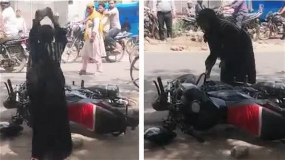 ਜਾਸ, ਖੁਰਜਾ (ਬੁਲੰਦਸ਼ਹਿਰ) : ਝਗੜੇ ਤੋਂ ਬਾਅਦ ਪਤਨੀ ਨੇ ਆਪਣੇ ਪਤੀ ਦਾ ਮੋਟਰਸਾਈਕਲ ਪੱਥਰ ਮਾਰ ਕੇ ਤੋੜ ਦਿੱਤਾ। ਝਗੜੇ ਤੋਂ ਬਾਅਦ ਪਤੀ ਮੌਕੇ ਤੋਂ ਭੱਜ ਗਿਆ। ਇਸ ਘਟਨਾ ਦਾ ਵੀਡੀਓ ਵੀਡੀਓ ਸੋਸ਼ਲ ਮੀਡੀਆ 'ਤੇ ਵਾਇਰਲ ਹੋ ਰਿਹਾ ਹੈ।