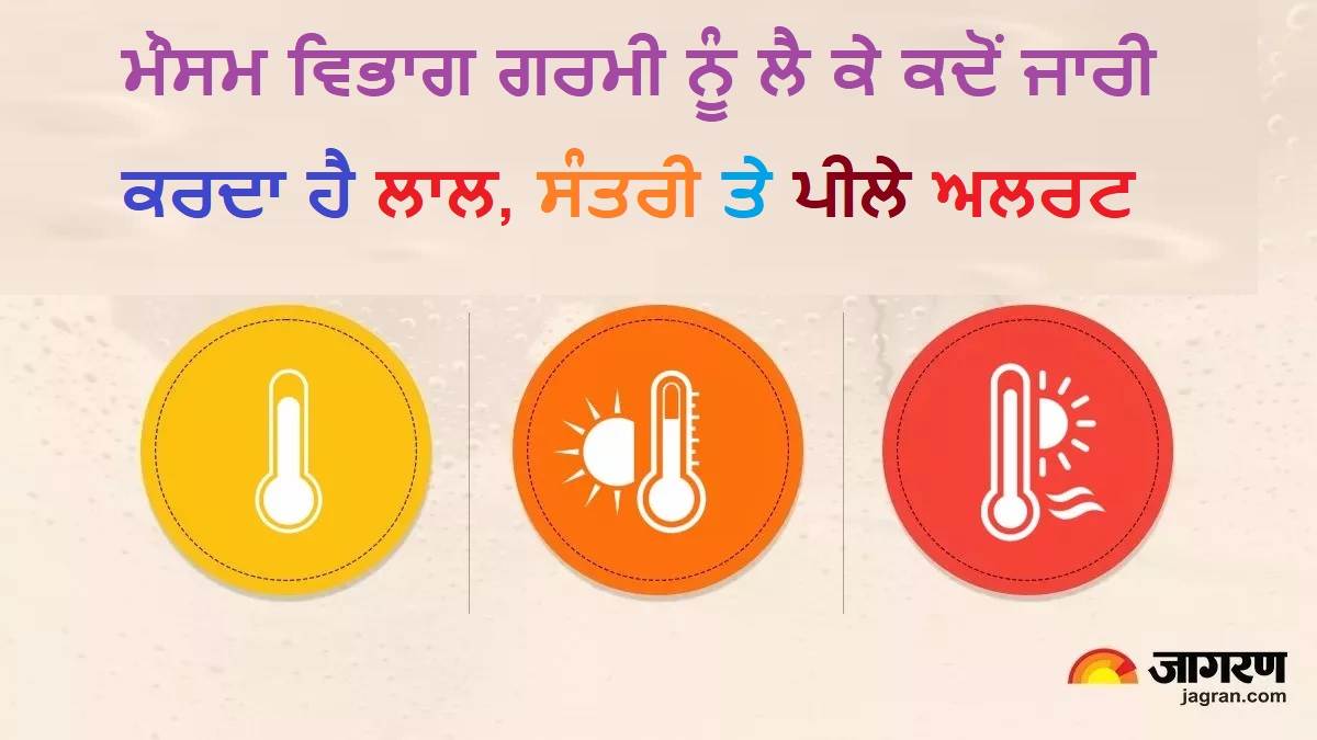 ਆਨਲਾਈਨ ਡੈਸਕ, ਨਵੀਂ ਦਿੱਲੀ : ਇਨ੍ਹੀਂ ਦਿਨੀਂ ਦੇਸ਼ ਭਰ ਵਿੱਚ ਭਿਆਨਕ ਗਰਮੀ ਨੇ ਤਬਾਹੀ ਮਚਾਈ ਹੋਈ ਹੈ। ਮੌਸਮ ਵਿਭਾਗ (ਭਾਰਤ ਮੌਸਮ ਵਿਭਾਗ) ਵੀ ਇਸ ਸਬੰਧੀ ਸਰਗਰਮ ਹੈ ਅਤੇ ਸਮੇਂ-ਸਮੇਂ 'ਤੇ ਲੋਕਾਂ ਨੂੰ ਵੱਖ-ਵੱਖ ਮੌਸਮ ਸੰਬੰਧੀ ਅਲਰਟ (IMD ਅਲਰਟ) ਜਾਰੀ ਕਰ ਰਿਹਾ ਹੈ। ਆਓ ਇਸ ਲੇਖ ਵਿਚ ਸਮਝੀਏ ਕਿ ਗਰਮੀ ਨੂੰ ਲੈ ਕੇ ਲਾਲ, ਸੰਤਰੀ ਅਤੇ ਪੀਲੇ ਅਲਰਟ ਕਦੋਂ ਜਾਰੀ ਕੀਤੇ ਜਾਂਦੇ ਹਨ ਅਤੇ ਤੁਸੀਂ ਇਨ੍ਹਾਂ ਰੰਗਾਂ ਨੂੰ ਦੇਖ ਕੇ ਮੌਸਮ ਦੀ ਗੰਭੀਰਤਾ ਦਾ ਅੰਦਾਜ਼ਾ ਕਿਵੇਂ ਲਗਾ ਸਕਦੇ ਹੋ।