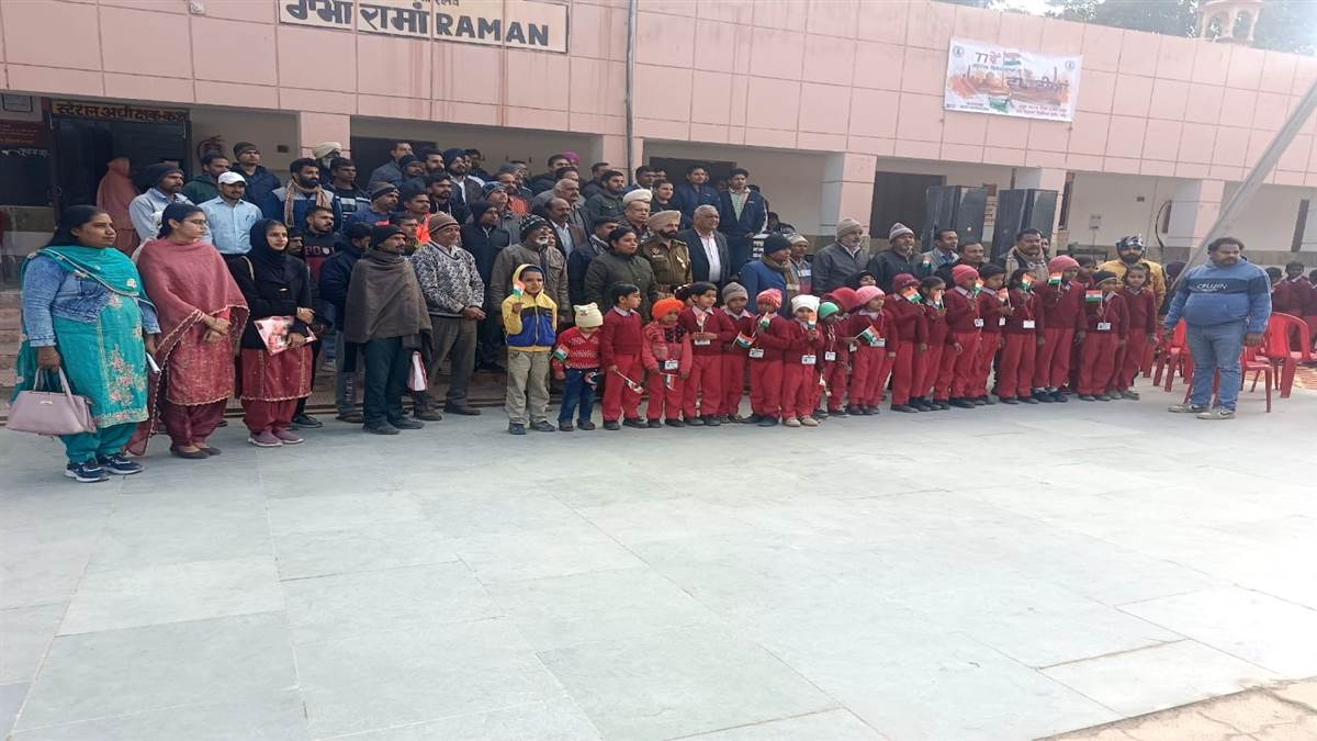 ਗਣਤੰਤਰ ਦਿਵਸ ਮੌਕੇ ਰੇਲਵੇ ਸਟੇਸ਼ਨ ਰਾਮਾਂ ਮੰਡੀ ਦੇ ਸਟਾਫ ਤੇ ਹਰੇ ਕ੍ਰਿਸ਼ਨਾ ਵੈਲਫੇਅਰ ਕਲੱਬ ਵੱਲੋਂ ਸਾਂਝੇ ਤੌਰ ’ਤੇ ਇਕ ਪ੍ਰਭਾਵਸ਼ਾਲੀ ਸਮਾਗਮ ਉਲੀਕਿਆ ਗਿਆ। ਇਸ ਮੌਕੇ ਸਟੇਸ਼ਨ ਮਾਸਟਰ ਮੁਨਫੈਦ ਖਾਨ ਵੱਲੋਂ ਤਿਰੰਗਾ ਲਹਿਰਾਉਣ ਦੀ ਰਸਮ ਅਦਾ ਕੀਤੀ। ਸਮਾਗਮ ’ਚ ਆਰੀਆ ਹਾਈ ਸਕੂਲ ਦੇ ਬੱਚਿਆਂ ਨੇ ਦੇਸ਼ ਭਗਤੀ ਦੇ ਗੀਤ ਪੇਸ਼ ਕਰਕੇ ਪੂਰੇ ਮਾਹੌਲ ਨੂੰ ਦੇਸ਼ ਪ੍ਰੇਮ ਦੇ ਰੰਗ ਵਿੱਚ ਰੰਗ ਦਿੱਤਾ। ਇਸ ਮੌਕੇ ਸੁਰੱਖਿਆ ਪ੍ਰਬੰਧਾਂ ਨੂੰ ਮੁੱਖ ਰੱਖਦੇ ਹੋਏ ਜੀਆਰਪੀ ਚੌਕੀ ਇੰਚਾਰਜ ਸਰਦਾਰ ਜਗਜੀਤ ਸਿੰਘ ਅਤੇ ਉਨ੍ਹਾਂ ਦਾ ਸਮੁੱਚਾ ਸਟਾਫ ਵੀ ਵਿਸ਼ੇਸ਼ ਤੌਰ 'ਤੇ ਹਾਜ਼ਰ ਰਿਹਾ। ਹਰੇ ਕ੍ਰਿਸ਼ਨ ਵੈੱਲਫੇਅਰ ਕਲੱਬ ਵੱਲੋਂ ਸਕੂਲ ਸਟਾਫ ਅਤੇ ਰੇਲਵੇ ਸਟਾਫ ਨੂੰ ਸਨਮਾਨ ਚਿੰਨ੍ਹ ਭੇਟ ਕੀਤੇ ਗਏ। ਸਮਾਗਮ ਪੇਸ਼ ਕਰਨ ਵਾਲੇ ਬੱਚਿਆਂ ਨੂੰ ਵਿਸ਼ੇਸ਼ ਇਨਾਮ ਤੇ ਸਾਰੇ ਬੱਚਿਆ ਨੂੰ ਕਾਪੀਆ-ਪੈਨਸਿਲਾਂ ਵੰਡ ਕੇ ਹੌਸਲਾ ਵਧਾਇਆ। ਰੇਲਵੇ ਸਟੇਸ਼ਨ ਦੇ ਸਟਾਫ ਵਿੱਚੋਂ ਬੁਕਿੰਗ ਕਲਰਕ ਸ਼ਾਮ ਸੁੰਦਰ, ਬੁਕਿੰਗ ਬਾਬੂ ਕ੍ਰਿਸ਼ਨ, ਰਾਹੁਲ ਕੁਮਾਰ ਤੇ ਵਿਕਰਮ ਸਿੰਘ ਹਾਜ਼ਰ ਸਨ। ਹਰੇ ਕ੍ਰਿਸ਼ਨਾ ਵੈਲਫੇਅਰ ਕਲੱਬ ਵੱਲੋਂ ਸਰਪ੍ਰਸਤ ਡਾ. ਸੋਹਨ ਲਾਲ ਕਲਿਆਣੀ, ਪ੍ਰਧਾਨ ਵਿਜੇ ਗਰੋਵਰ, ਸਲਾਹਕਾਰ ਮਿੱਠੂ ਸਿੰਘ ਜੋਗੇਵਾਲੀਆ, ਟਿੰਕੂ ਕੋਰੀਅਰ, ਤਰਸੇਮ ਬਾਂਸਲ, ਤਰਸੇਮ ਮਲਕਾਣਾ, ਹੰਸ ਰਾਜ ਖੰਨਾ, ਪ੍ਰਕਾਸ਼ ਸਿੰਗਲ ਅਤੇ ਰਿਸੂ ਗਰਗ ਨੇ ਸ਼ਿਰਕਤ ਕੀਤੀ।ਆਰੀਆ ਹਾਈ ਸਕੂਲ ਵੱਲੋਂ ਪ੍ਰਿੰਸੀਪਲ ਮੈਡਮ ਜਯੋਤੀ ਤੇ ਪ੍ਰਬੰਧਕ ਕਮੇਟੀ ਦੇ ਮੈਨੇਜਰ ਅਜੀਤ ਕੁਮਾਰ ਗੁਪਤਾ ਪਹੁੰਚੇ। ਮਹਿੰਦੀਪੁਰ ਬਾਲਾ ਜੀ ਮੰਡਲ ਦੇ ਪ੍ਰਧਾਨ ਸ੍ਰੀ ਨਰੇਸ਼ ਕੁਮਾਰ ਬੰਗੀ, ਸੈਕਟਰੀ ਰਾਜ ਕੁਮਾਰ, ਵਿਕਾਸ ਕੁਮਾਰ, ਬਾਬੂ ਸੋਨੀ, ਰਿਸੂ ਬਾਂਸਲ ਅਤੇ ਸਹਾਰਾ ਕਲੱਬ ਦੇ ਪ੍ਰਧਾਨ ਸੁਰੇਸ਼ ਕੁਮਾਰ ਕਾਂਸਲ ਵੀ ਇਸ ਪ੍ਰੋਗਰਾਮ ਦਾ ਹਿੱਸਾ ਬਣੇ।