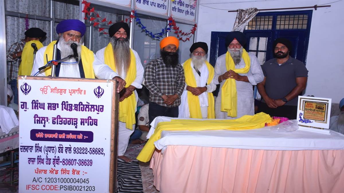 ਟੋ ਫ਼ਾਈਲ : 19 ਗਿਆਨੀ ਭੁਪਿੰਦਰ ਸਿੰਘ ਦਾ ਸਨਮਾਨ ਕਰਦੇ ਹੋਏ ਪਿੰਡ ਵਾਸੀ। ਪੱਤਰ ਪ੍ਰੇਰਕ, ਪੰਜਾਬੀ ਜਾਗਰਣ, ਫਤਹਿਗੜ੍ਹ ਸਾਹਿਬ : ਗੁਰਦੁਆਰਾ ਸਿੰਘ ਸਭਾ ਪਿੰਡ ਬਹਿਲੋਲਪੁਰ ਵਿਖੇ ਲਗਭਗ 52 ਸਾਲ ਸ਼ਾਨਦਾਰ ਸੇਵਾਵਾਂ ਨਿਭਾਉਣ ਵਾਲੇ ਗ੍ਰੰਥੀ ਗਿਆਨੀ ਭੁਪਿੰਦਰ ਸਿੰਘ ਲਈ ਪ੍ਰਬੰਧਕ ਕਮੇਟੀ ਅਤੇ ਨਗਰ ਨਿਵਾਸੀਆਂ ਵੱਲੋਂ ਵਿਦਾਇਗੀ ਸਮਾਗਮ ਕਰਵਾਇਆ ਗਿਆ। ਇਸ ਮੌਕੇ ਸ੍ਰੀ ਅਖੰਡ ਪਾਠ ਸਾਹਿਬ ਦੇ ਭੋਗ ਪਾਏ ਗਏ ਅਤੇ ਢਾਡੀ ਪਰਮਜੀਤ ਸਿੰਘ ਪਾਰਸ ਦੇ ਜਥੇ ਨੇ ਸੰਗਤ ਨੂੰ ਗੁਰ ਇਤਿਹਾਸ ਨਾਲ ਜੋੜਿਆ। ਸਮਾਗਮ ਦੌਰਾਨ ਗਿਆਨੀ ਭੁਪਿੰਦਰ ਸਿੰਘ ਨੂੰ ਨਗਰ ਵਾਸੀਆਂ ਵੱਲੋਂ ਇੱਕ ਸਾਈਕਲ, 51000 ਰੁਪਏ ਨਕਦ, ਲੋਈ ਅਤੇ ਸਿਰੋਪਾਉ ਦੇ ਕੇ ਸਨਮਾਨਿਤ ਕੀਤਾ ਗਿਆ। ਗੁਰਦੁਆਰਾ ਕਮੇਟੀ ਦੇ ਪ੍ਰਧਾਨ ਦਲਬਾਰਾ ਸਿੰਘ ਨੇ ਦੱਸਿਆ ਕਿ ਗਿਆਨੀ ਭੁਪਿੰਦਰ ਸਿੰਘ 1973 ਤੋਂ 2025 ਤੱਕ ਨਿਰੰਤਰ ਸੇਵਾਵਾਂ ਨਿਭਾਉਂਦੇ ਰਹੇ ਹਨ ਅਤੇ ਉਨ੍ਹਾਂ ਦਾ ਜੀਵਨ ਸੰਗਤ ਲਈ ਪ੍ਰੇਰਨਾ ਸਰੋਤ ਰਿਹਾ ਹੈ। ਇਸ ਮੌਕੇ ਗ੍ਰੰਥੀ ਸਿੰਘ ਦੀਆਂ ਚਾਰ ਬੇਟੀਆਂ ਅਤੇ ਜਵਾਈਆਂ ਦਾ ਵੀ ਵਿਸ਼ੇਸ਼ ਸਨਮਾਨ ਕੀਤਾ ਗਿਆ। ਪ੍ਰਧਾਨ ਦਲਬਾਰਾ ਸਿੰਘ ਨੇ ਅਪੀਲ ਕੀਤੀ ਕਿ ਗ੍ਰੰਥੀ ਸਿੰਘਾਂ ਦਾ ਹਮੇਸ਼ਾ ਸਤਿਕਾਰ ਕੀਤਾ ਜਾਣਾ ਚਾਹੀਦਾ ਹੈ। ਇਸ ਮੌਕੇ ਮੋਹਨਜੀਤ ਸਿੰਘ, ਮੇਹਰ ਸਿੰਘ, ਵਰਿੰਦਰ ਸਿੰਘ, ਸਰਬਜੀਤ ਸਿੰਘ, ਸੰਤੋਖ ਸਿੰਘ ਲੰਬੜਦਾਰ, ਗਿਆਨੀ ਨਰਿੰਦਰ ਸਿੰਘ ਅਤੇ ਵੱਡੀ ਗਿਣਤੀ ਵਿੱਚ ਪਿੰਡ ਵਾਸੀ ਮੌਜੂਦ ਸਨ।
