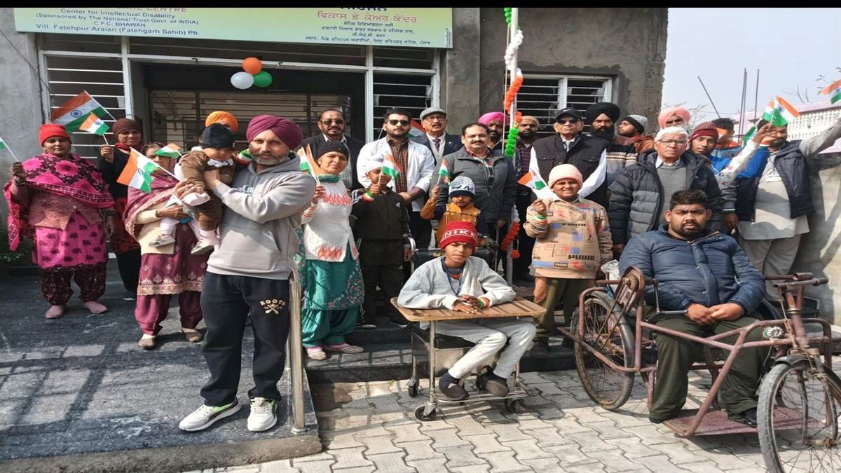 ਪੱਤਰ ਪ੍ਰੇਰਕ, ਪੰਜਾਬੀ ਜਾਗਰਣ, ਬਸੀ ਪਠਾਣਾਂ : ਕਨਫੈਡਰੇਸ਼ਨ ਫਾਰ ਚੈਲੈਂਜਡ (ਸੀ.ਐਫ.ਸੀ) ਵੱਲੋਂ ਪਿੰਡ ਫਤਿਹਪੁਰ ਅਰਾਈਆਂ ਵਿਖੇ ਸਥਿਤ ਸ੍ਰੀਜਨ ਵਿਕਾਸ ਡੇ ਕੇਅਰ ਸਕੂਲ ਵਿਖੇ 77ਵਾਂ ਗਣਤੰਤਰ ਦਿਵਸ ਮਨਾਇਆ ਗਿਆ। ਜਿਸ ’ਚ ਖਾਸ ਮਹਿਮਾਨ ਨਕੇਸ਼ ਜਿੰਦਲ ਤੇ ਡਾ. ਕਮਲ ਕੁਮਾਰ ਖੰਨਾ ਐਮਡੀ ਅਰਦਾਸ ਹਸਪਤਾਲ ਨੇ ਤਿਰੰਗਾ ਲਹਿਰਾਉਣ ਦੀ ਰਸਮ ਅਦਾ ਕੀਤੀ। ਇਸ ਮੌਕੇ ਦਿਵਿਆਂਗ ਅਮਨਦੀਪ ਸਿੰਘ ਨੂੰ ਮੋਟਰਾਈਜ਼ਡ ਸਾਈਕਲ ਭੇਂਟ ਕੀਤੀ ਗਈ। ਸੰਸਥਾ ਦੇ ਪ੍ਰਧਾਨ ਮਨਮੋਹਨ ਜਰਗਰ ਨੇ ਆਈਆਂ ਸ਼ਖ਼ਸੀਅਤਾਂ ਦਾ ਧੰਨਵਾਦ ਕੀਤਾ। ਇਸ ਮੌਕੇ ਕ੍ਰਿਸ਼ਨ ਵਰਮਾ, ਜੈ ਕਿਸ਼ਨ ਕਸ਼ਯਪ, ਡਾ. ਆਦਿਤਿਆ (ਅਰਦਾਸ ਹਸਪਤਾਲ), ਹਰਨੇਕ ਸਿੰਘ, ਮਨਵਿੰਦਰ ਸਿੰਘ, ਮਹਿੰਦਰ ਸਿੰਘ ਤੇ ਕੇਂਦਰ ਦੇ ਪ੍ਰਿੰਸਿਪਲ ਸਪੈਸ਼ਲ ਐਜੂਕੇਟਰ ਰਾਜਵੀਰ ਕੌਰ, ਸਤਨਾਮ ਸਿੰਘ (ਸਪੈਸ਼ਲ ਐਜੂਕੇਟਰ), ਰਵਿੰਦਰ ਸਿੰਘ (ਕਾਊਂਸਲਰ), ਰਜਨੀ ਦੇਉਰਾ (ਐਕਟਿਵਿਟੀ ਟ੍ਰੇਨਰ), ਸੁਖਵਿੰਦਰ ਕੌਰ, ਗਗਨਦੀਪ ਕੌਰ, ਗੁਰਦੀਪ ਕੌਰ, ਜਸਵੰਤ ਸਿੰਘ, ਬਹਾਦੁਰ ਸਿੰਘ, ਕਰਨ ਸਿੰਘ ਆਦਿ ਮੌਜੂਦ ਸਨ।