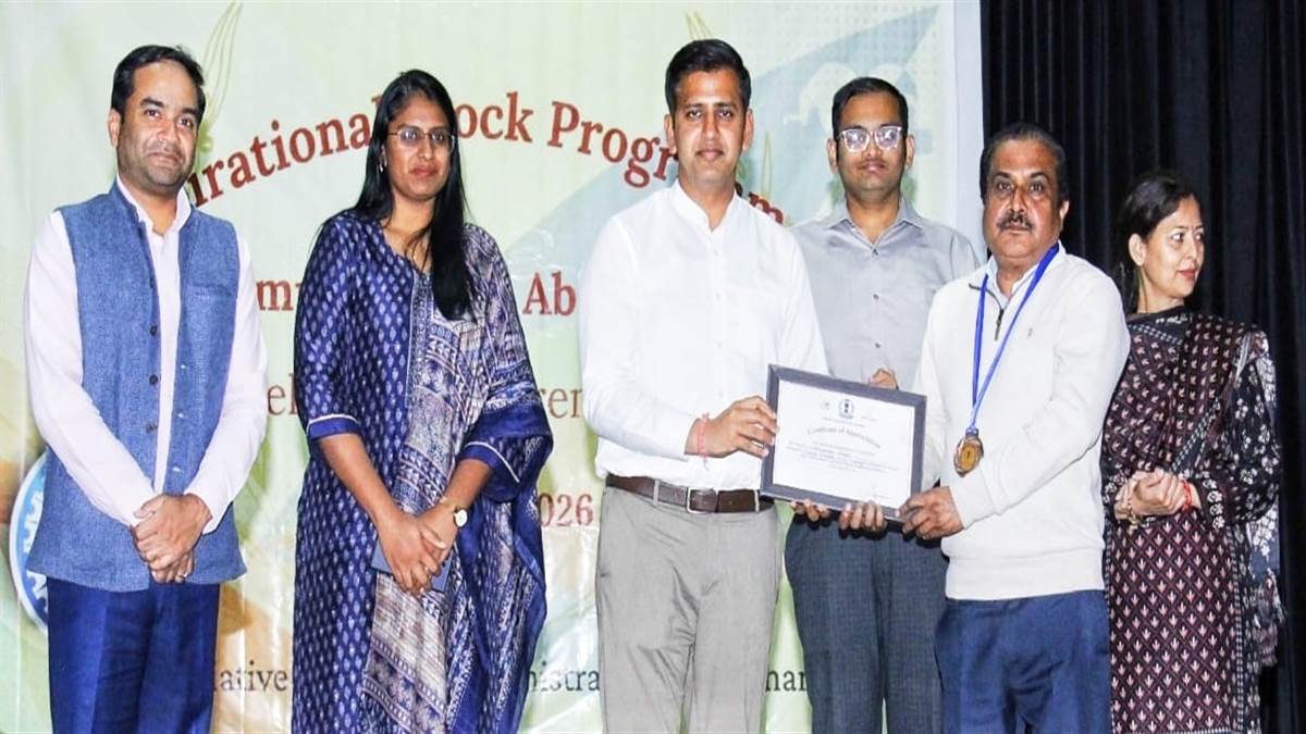 ਗਿਆਨ ਸੈਦਪੁਰੀ, ਪੰਜਾਬੀ ਜਾਗਰਣ, ਸ਼ਾਹਕੋਟ : ਭਾਰਤ ਸਰਕਾਰ ਵੱਲੋਂ ਸ਼ੁਰੂ ਕੀਤੇ 'ਐਸਪੀਰੇਸ਼ਨਲ ਬਲਾਕ ਪ੍ਰੋਗਰਾਮ' ਤਹਿਤ ਵਧੀਆ ਕਾਰਗੁਜ਼ਾਰੀ ਦਿਖਾਉਣ ਵਾਲੇ ਅਧਿਕਾਰੀਆਂ ਤੇ ਮੁਲਾਜ਼ਮਾਂ ਨੂੰ ਸਨਮਾਨਿਤ ਕਰਨ ਲਈ ਜ਼ਿਲ੍ਹਾ ਪ੍ਰਸ਼ਾਸ਼ਨ ਜਲੰਧਰ ਵੱਲੋਂ ਕਰਵਾਏ ਗਏ ਇਕ ਪ੍ਰਭਾਵਸ਼ਾਲੀ ਸਮਾਗਮ ਦੌਰਾਨ ਬਲਾਕ ਸ਼ਾਹਕੋਟ ’ਚ ਪਸ਼ੂ ਪਾਲਣ ਵਿਭਾਗ ਵਿਚ ਵਧੀਆ ਸੇਵਾਵਾਂ ਨਿਭਾਉਣ ਤੇ ਸਾਰੇ ਟੀਚੇ ਪੂਰੇ ਕਰਨ ਲਈ ਡਿਪਟੀ ਡਾਇਰੈਕਟਰ ਪਸ਼ੂ ਪਾਲਣ ਵਿਭਾਗ ਡਾ. ਸੁਖਵਿੰਦਰ ਸਿੰਘ, ਸੀਨੀਅਰ ਵੈਟਰਨਰੀ ਅਫ਼ਸਰ ਸ਼ਾਹਕੋਟ ਡਾ. ਅਮਨਦੀਪ ਤੇ ਨੋਡਲ ਅਫ਼ਸਰ ਜੈਯੰਤ ਮਹਿੰਦਰੂ ਨੂੰ ਪ੍ਰਸ਼ੰਸਾ ਪੱਤਰ ਤੇ ਮੈਡਲ ਦੇ ਕੇ ਸਨਮਾਨਿਤ ਕੀਤਾ ਗਿਆ। ਇਹ ਸਨਮਾਨ ਡਿਪਟੀ ਕਮਿਸ਼ਨਰ ਜਲੰਧਰ ਡਾ. ਹਿਮਾਂਸ਼ੂ ਅਗਰਵਾਲ, ਐੱਸਡੀਐੱਮ ਸ਼ਾਹਕੋਟ ਅਦਿਤਿਆ ਗੁਪਤਾ ਤੇ ਹੋਰ ਪ੍ਰਸ਼ਾਸਨਿਕ ਅਧਿਕਾਰੀਆਂ ਵੱਲੋਂ ਦਿੱਤਾ ਗਿਆ। ਸਨਮਾਨ ਪ੍ਰਾਪਤ ਕਰਨ ਉਪਰੰਤ ਡਾ. ਅਮਨਦੀਪ ਨੇ ਕਿਹਾ ਕਿ ਉਹ ਵਿਭਾਗ ਵੱਲੋਂ ਸੌਂਪੀਆਂ ਗਈਆਂ ਜ਼ੈਂਮੇਵਾਰੀਆਂ ਨੂੰ ਪਹਿਲਾਂ ਤੋਂ ਵੀ ਵੱਧ ਸ਼ਿੱਦਤ ਨਾਲ ਨਿਭਾਉਣਗੇ। ਉਨ੍ਹਾਂ ਇਸ ਸਨਮਾਨ ਲਈ ਸ਼ਾਹਕੋਟ ਤਹਿਸੀਲ ਪ੍ਰਸ਼ਾਸਨ ਤੇ ਜ਼ਿਲ੍ਹਾ ਪ੍ਰਸ਼ਾਸਨ ਦਾ ਧੰਨਵਾਦ ਕੀਤਾ।