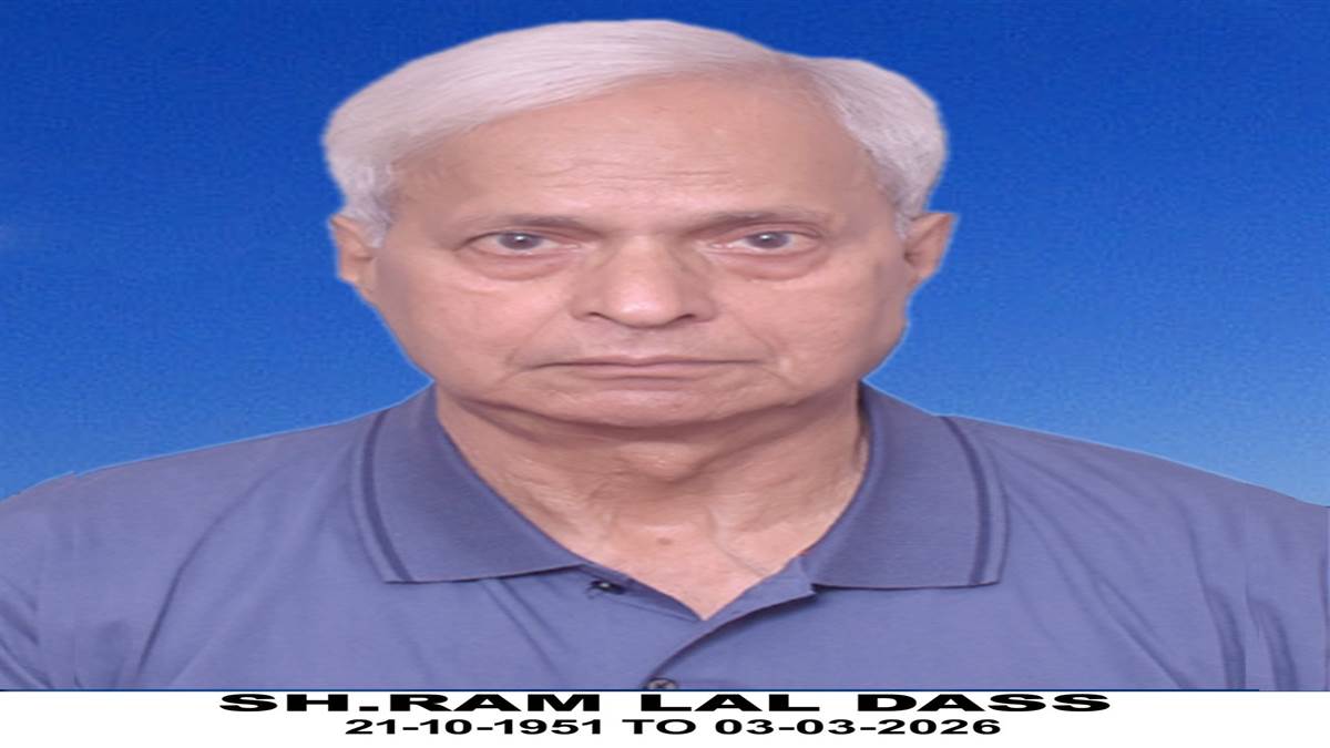 ਮਹਿੰਦਰ ਰਾਮ ਫੁੱਗਲਾਣਾ, ਪੰਜਾਬੀ ਜਾਗਰਣ, ਜਲੰਧਰ : ਸੇਵਾਮੁਕਤ ਬੈਂਕ ਅਧਿਕਾਰੀ ਰਾਮ ਲਾਲ ਦਾਸ ਜੋ ਪਿਛਲੇ ਦਿਨੀ ਸਦੀਵੀ ਵਿਛੋੜਾ ਦੇ ਗਏ ਸਨ। ਉਨ੍ਹਾਂ ਨਮਿਤ ਸ਼ਰਧਾਂਜਲੀ ਸਮਾਗਮ 15 ਮਾਰਚ ਨੂੰ 12 ਵਜੇ ਤੋਂ 2 ਵਜੇ ਤੱਕ ਕਮਿਊਨਿਟੀ ਸੈਂਟਰ ਡਾ. ਅੰਬੇਡਕਰ ਮਾਰਗ ਨੇੜੇ ਬੁੱਧ ਬਿਹਾਰ ਸਿਧਾਰਥ ਨਗਰ ਵਿਖੇ ਹੋਵੇਗਾ।
