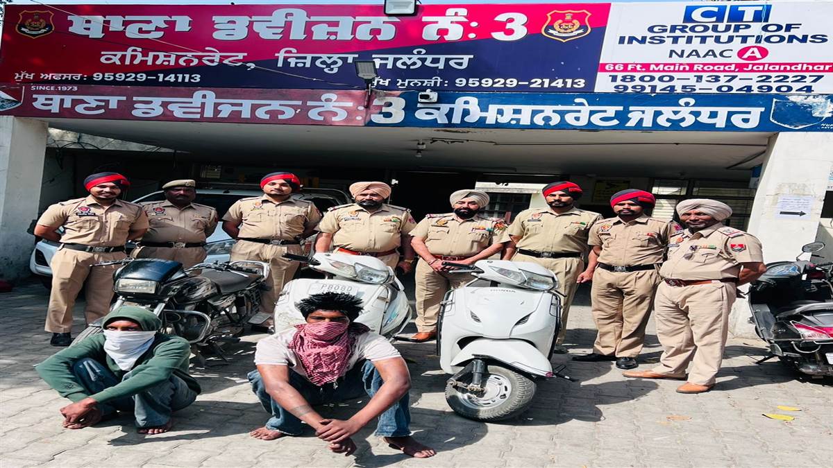 ਰਾਕੇਸ਼ ਗਾਂਧੀ, ਪੰਜਾਬੀ ਜਾਗਰਣ, ਜਲੰਧਰ : ਥਾਣਾ ਨੰਬਰ ਤਿੰਨ ਦੀ ਪੁਲਿਸ ਨੇ ਵੱਖ-ਵੱਖ ਮੁਕੱਦਮਿਆਂ ’ਚ ਵੱਖ-ਵੱਖ ਥਾਵਾਂ ਤੋਂ ਦੋ ਨੌਜਵਾਨਾਂ ਨੂੰ ਕਾਬੂ ਕਰਕੇ ਉਨ੍ਹਾਂ ਕੋਲੋਂ ਚੋਰੀ ਦੇ ਦੋ ਪਈਆ ਵਾਹਨ ਬਰਾਮਦ ਕੀਤੇ ਹਨ। ਜਾਣਕਾਰੀ ਅਨੁਸਾਰ ਥਾਣਾ ਮੁਖੀ ਸਬ-ਇੰਸਪੈਕਟਰ ਜਤਿੰਦਰ ਸਿੰਘ ਦੀ ਅਗਵਾਈ ਹੇਠ ਹੈੱਡ ਕਾਂਸਟੇਬਲ ਸਾਹਿਲ ਨਾਹਰ ਨੇ ਮੁਕੱਦਮਾ ਨੰਬਰ 20 ਮਿਤੀ 18/2/ 26 ਧਾਰਾ 303(2) ’ਚ ਇਕ ਮੁਲਜ਼ਮ ਹਰਮਿੰਦਰ ਸਿੰਘ ਉਰਫ ਮਿੰਦੂ ਨੂੰ ਕਾਬੂ ਕਰਕੇ ਉਸ ਕੋਲੋਂ ਚੋਰੀ ਦਾ ਇਕ ਸਕੂਟਰ ਬਰਾਮਦ ਕੀਤਾ। ਬਾਅਦ ’ਚ ਉਸ ਕੋਲੋਂ ਕੀਤੀ ਗਈ ਪੁੱਛਗਿਛ ਤੋਂ ਬਾਅਦ ਉਸਦੀ ਨਿਸ਼ਾਨਦੇਹੀ ’ਤੇ ਪੁਲਿਸ ਨੇ ਇਕ ਹੋਰ ਚੋਰੀ ਦਾ ਸਕੂਟਰ ਜੋ ਕਿ ਉਸ ਨੇ ਇਕ ਉਜਾੜ ਥਾਂ ’ਤੇ ਲੁਕੋ ਕੇ ਰੱਖੀ ਹੋਈ ਸੀ, ਵੀ ਬਰਾਮਦ ਕਰ ਲਿਆ। ਇਸੇ ਤਰ੍ਹਾਂ ਏਐੱਸਆਈ ਸਤਵਿੰਦਰ ਸਿੰਘ ਨੇ ਮੁਕੱਦਮਾ ਨੰਬਰ 37 ਮਿਤੀ 24/3 /26 ਧਾਰਾ 303(2)317(2) ’ਚ ਮਨੀ ਨੂੰ ਕਾਬੂ ਕਰਕੇ ਉਸ ਕੋਲੋਂ ਚੋਰੀ ਦਾ ਇਕ ਮੋਟਰਸਾਈਕਲ ਬਰਾਮਦ ਕੀਤਾ ਹੈ। ਥਾਣਾ ਮੁਖੀ ਜਤਿੰਦਰ ਸਿੰਘ ਨੇ ਦੱਸਿਆ ਕਿ ਦੋਵੇਂ ਮੁਲਜ਼ਮਾਂ ਨੂੰ ਅਦਾਲਤ ’ਚ ਪੇਸ਼ ਕਰਕੇ ਇਕ ਇਕ ਦਿਨ ਦਾ ਪੁਲਿਸ ਰਿਮਾਂਡ ਹਾਸਲ ਕੀਤਾ ਗਿਆ ਹੈ। ਰਿਮਾਂਡ ਦੌਰਾਨ ਇਨ੍ਹਾਂ ਕੋਲੋਂ ਚੋਰੀ ਦੇ ਹੋਰ ਵੀ ਵਾਹਨ ਬਰਾਮਦ ਹੋਣ ਦੀ ਉਮੀਦ ਹੈ। ਫਿਲਹਾਲ ਪੁਲਿਸ ਡੂੰਘਾਈ ਨਾਲ ਪੁੱਛਗਿੱਛ ਕਰ ਰਹੀ ਹੈ।