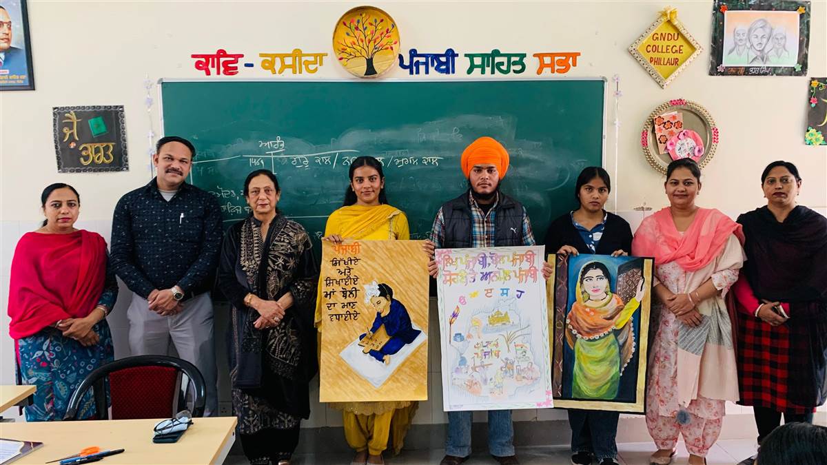 ਅਜੇ ਸਿੰਘ ਨਾਗੀ, ਪੰਜਾਬੀ ਜਾਗਰਣ, ਫਿਲੌਰ : ਗੁਰੂ ਨਾਨਕ ਦੇਵ ਯੂਨੀਵਰਸਿਟੀ ਕਾਲਜ ਫਿਲੌਰ ਵਿਖੇ ਅੰਤਰਾਸ਼ਟਰੀ ਮਾਂ-ਬੋਲੀ ਦਿਵਸ ਨੂੰ ਮਨਾਉਂਦਿਆਂ ਪੋਸਟਰ ਮੇਕਿੰਗ ਤੇ ਸਲੋਗਨ ਲਿਖਣ ਮੁਕਾਬਲੇ ਕਰਵਾਏ ਗਏ| ਕਾਵਿ-ਕਸੀਦਾ ਪੰਜਾਬੀ ਸਾਹਿਤ ਸਭਾ ਵੱਲੋਂ ਇਹ ਮੁਕਾਬਲੇ ਡਾ. ਪਰਮਜੀਤ ਕੌਰ (ਪੰਜਾਬੀ ਵਿਭਾਗ) ਦੁਆਰਾ ਪ੍ਰਿੰਸੀਪਲ ਡਾ. ਪਰਮਜੀਤ ਕੌਰ ਜੱਸਲ ਦੀ ਅਗਵਾਈ ਹੇਠ ਕਰਵਾਏ ਗਏ, ਇਨ੍ਹਾਂ ਮੁਕਾਬਲਿਆਂ ਦਾ ਮੁੱਖ ਵਿਸ਼ਾ ਪੰਜਾਬੀ ਮਾਂ-ਬੋਲੀ ਤੇ ਪੰਜਾਬੀ ਸੱਭਿਆਚਾਰ ਰਿਹਾ। ਪ੍ਰਿੰਸੀਪਲ ਨੇ ਵਿਦਿਆਰਥੀਆਂ ਦੁਆਰਾ ਕੀਤੀ ਮਿਹਨਤ ਦੀ ਸ਼ਲਾਘਾ ਕੀਤੀ ਅਤੇ ਕਿਹਾ ਕਿ ਯੁਵਕ ਵਰਗ ਨੂੰ ਲੋੜ ਹੈ ਆਪਣੀ ਮਾਤ-ਭਾਸ਼ਾ ਨਾਲ ਰੂਹ ਤੋਂ ਪਿਆਰ ਕਰਨ ਦੀ, ਕਿਉਂਕਿ ਪੰਜਾਬ ਦਾ ਯੂਥ ਅੱਜ ਕੱਲ ਵਿਦੇਸ਼ ਜਾ ਕੇ ਵੱਸਣ ਦੇ ਹਿੱਤ ਨੂੰ ਪਹਿਲ ਦੇ ਰਿਹਾ ਹੈ, ਜੋ ਕਿ ਪੰਜਾਬ ਦੇ ਆਉਣ ਵਾਲੇ ਸਮੇਂ ਲਈ ਖ਼ਤਰਾ ਹੈ। ਮੁਕਾਬਲਿਆਂ ‘ਚ ਹਿੱਸਾ ਲੈਣ ਵਾਲੇ ਵਿਦਿਆਰਥੀਆਂ ਦੀ ਹੌਸਲਾ ਅਫ਼ਜਾਈ ਕਰਦਿਆਂ ਪ੍ਰਿੰਸੀਪਲ ਨੇ ਉਨ੍ਹਾਂ ਦਾ ਉਤਸ਼ਾਹ ਵਧਾਉਂਦਿਆਂ ਕਿਹਾ, ‘ਖੁਸ਼ੀ ਹੈ ਕਿ ਸਾਡਾ ਨੌਜਵਾਨ ਵਰਗ ਆਪਣੀ ਮਾਤ-ਭੂਮੀ ਨਾਲ ਜੁੜ ਕੇ ਆਪਣੀ ਮਾਂ-ਬੋਲੀ ਨੂੰ ਬਣਦਾ ਪਿਆਰ ਤੇ ਸਤਿਕਾਰ ਅੱਜ ਵੀ ਦੇ ਰਿਹਾ ਹੈ।’ ਇਨ੍ਹਾਂ ਮੁਕਾਬਲਿਆਂ ਵਿੱਚ ਵੀਹ ਵਿਦਿਆਰਥੀਆਂ ਨੇ ਹਿੱਸਾ ਲਿਆ, ਜਿਨ੍ਹਾਂ ਵਿੱਚ ਕਾਰਤਿਕ, ਇਸ਼ਾ, ਪ੍ਰਯੰਕਾ ਬੀ.ਸੀ.ਏ ਦੇ ਵਿਦਿਆਰਥੀ, ਲਵਪ੍ਰੀਤ, ਤਮੰਨਾ, ਤਰਨਪ੍ਰੀਤ ਕੌਰ, ਪ੍ਰੀਤੀ, ਇੰਦਰਪ੍ਰੀਤ ਕੌਰ, ਮਨਪ੍ਰੀਤ ਕੌਰ, ਜਸਪ੍ਰੀਤ ਕੌਰ, ਕਮਲਜੀਤ ਕੌਰ, ਰਾਗਿਨੀ, ਸਿਮਰਨ, ਹਰਪ੍ਰੀਤ ਅਤੇ ਕਾਜਲ ਬੀ.ਏ. ਦੇ ਵਿਦਿਆਰਥੀਆਂ, ਜਸਪ੍ਰੀਤ ਸਿੰਘ, ਕੁਮਾਰੀ ਰੂਪਮ, ਤਨਵੀ ਤੇ ਕਿਰਨ ਬੀ.ਕਾਮ ਦੇ ਵਿਦਿਆਰਥੀਆਂ ਅਤੇ ਅੰਮ੍ਰਿਤਾ ਤੇ ਸੋਨਮ ਐੱਮ.ਏ. ਪੰਜਾਬੀ ਦੀਆਂ ਵਿਦਿਆਰਥਣਾਂ ਨੇ ਹਿੱਸਾ ਲਿਆ। ਜੱਜਾਂ ਦੀ ਭੂਮਿਕਾ ਪ੍ਰੋ: ਜਸਪ੍ਰੀਤ ਕੌਰ(ਇਕਨਾਮਿਕਸ ਵਿਭਾਗ), ਪ੍ਰੋ: ਰਾਜਨ ਮਿੱਤੂ(ਕਾਮਰਸ ਵਿਭਾਗ) ਅਤੇ ਪ੍ਰੋ: ਵਿਸ਼ਾਲੀ ਪਸਰੀਚਾ(ਕੰਪਿਊਟਰ ਵਿਭਾਗ) ਨੇ ਨਿਭਾਈ| ਇਸਦੇ ਨਾਲ ਫੋਟੋਗਰਾਫੀ ਦੀ ਭੂਮਿਕਾ ਪ੍ਰੋ: ਰੁਪਿੰਦਰ ਸਿੰਘ (ਇਤਿਹਾਸ ਵਿਭਾਗ) ਨੇ ਨਿਭਾਈ | ਜੇਤੂਆਂ ਵਿੱਚ ਪਹਿਲਾ ਸਥਾਨ ਜਸਪ੍ਰੀਤ ਸਿੰਘ (ਬੀ.ਕਾਮ ਭਾਗ ਦੂਜਾ), ਦੂਜਾ ਸਥਾਨ ਕੁਮਾਰੀ ਰੂਪਮ (ਬੀ.ਕਾਮ, ਭਾਗ ਤੀਜਾ) ਤਮੰਨਾ (ਬੀ.ਏ ਭਾਗ ਪਹਿਲਾ) ਨੇ ਤੀਜਾ ਸਥਾਨ ਹਾਸਿਲ ਕੀਤਾ| ਇਸਦੇ ਨਾਲ ਹੀ ਤਰਨਪ੍ਰੀਤ (ਬੀ.ਏ. ਭਾਗ ਪਹਿਲਾ) ਅਤੇ ਕਾਰਤਿਕ (ਬੀ.ਸੀ.ਏ ਭਾਗ ਦੂਜਾ) ਨੇ ਹੌਸਲਾ ਵਧਾਊ ਇਨਾਮ ਹਾਸਿਲ ਕੀਤਾ। ਇਨ੍ਹਾਂ ਜੇਤੂਆਂ ਨੂੰ ਕਾਲਜ ਵੱਲੋਂ ਇਨਾਮ ਦੇ ਕੇ ਸਨਮਾਨਿਤ ਕੀਤਾ ਗਿਆ ਅਤੇ ਹਿੱਸਾ ਲੈਣ ਵਾਲੇ ਸਾਰੇ ਵਿਦਿਆਰਥੀਆਂ ਨੂੰ ਸਰਟੀਫਿਕੇਟ ਵੀ ਵੰਡੇ ਗਏ। ਇਸ ਮੌਕੇ ਕਾਲਜ ਦੇ ਸਮੂਹ ਟੀਚਿੰਗ ਸਟਾਫ਼ ਨੇ ਆਪਣਾ ਅਹਿਮ ਯੋਗਦਾਨ ਦਿੱਤਾ।