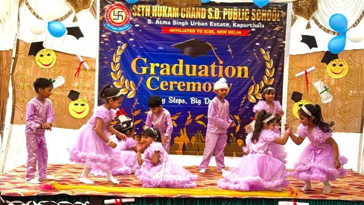 ਅਮਰੀਕ ਮੱਲ੍ਹੀ/ ਦੀਪਕ, ਪੰਜਾਬੀ ਜਾਗਰਣ ਕਪੂਰਥਲਾ : ਸੇਠ ਹੁਕਮ ਚੰਦ ਐੱਸਡੀ ਪਬਲਿਕ ਸਕੂਲ ਅਰਬਨ ਅਸਟੇਟ ਕਪੂਰਥਲਾ ਵਿਚ ਨੰਨ੍ਹੇ-ਮੁੰਨੇ ਬੱਚਿਆਂ ਲਈ ਗ੍ਰੈਜੂਏਸ਼ਨ ਸੈਰਾਮਨੀ ਬੜੀ ਧੂਮਧਾਮ ਨਾਲ ਕਰਵਾਈ ਗਈ। ਸੇਠ ਹੁਕਮ ਚੰਦ ਐੱਸਡੀ ਪਬਲਿਕ ਸਕੂਲ ਦੇ ਮੈਨੇਜਰ ਪ੍ਰਵੀਨ ਦਾਦਾ ਮੁੱਖ ਮਹਿਮਾਨ ਵਜੋਂ ਸ਼ਾਮਲ ਹੋਏ। ਪ੍ਰਿੰਸੀਪਲ ਸੋਨੀਆ ਜੈਰਥ ਨੇ ਮੁੱਖ ਮਹਿਮਾਨ ਨੂੰ ਫੁੱਲਾਂ ਦਾ ਗੁੱਲਦਸਤਾ ਦੇ ਕੇ ਸਵਾਗਤ ਕੀਤਾ। ਪ੍ਰੋਗਰਾਮ ਦੀ ਸ਼ੁਰੂਆਤ ਮਾਤਾ ਸਰਸਵਤੀ ਦੀ ਪ੍ਰਤਿਮਾ ਅੱਗੇ ਸ਼ਮਾ ਰੋਸ਼ਨ ਤੇ ਫੁੱਲ ਅਰਪਿਤ ਕਰਕੇ ਕਰਵਾਈ ਗਈ। ਪਹਿਲੀ ਜਮਾਤ ਦੇ ਬੱਚਿਆਂ ਨੇ ਵੀਆਰ ਗਰੈਜੂਏਟ, ਡਰੀਮ ਬਿੱਗ ਗੀਤਾਂ ’ਤੇ ਡਾਂਸ ਪੇਸ਼ ਕੀਤਾ। ਐੱਲਕੇਜੀ ਤੇ ਯੂਕੇਜੀ ਦੇ ਵਿਦਿਆਰਥੀਆਂ ਨੇ ਦਿ ਬੈਸਟ ਡੇ ਇਨ ਮਾਈ ਲਾਈਫ ਗੀਤਾਂ ’ਤੇ ਡਾਂਸ ਪੇਸ਼ ਕੀਤਾ। ਮੈਨੇਜਰ ਪ੍ਰਵੀਨ ਦਾਦਾ ਤੇ ਪ੍ਰਿੰਸੀਪਲ ਸੋਨੀਆ ਨੇ ਗ੍ਰੈਜੂਏਸ਼ਨ ਸੈਰਾਮਨੀ ਦੌਰਾਨ ਨੰਨ੍ਹੇ ਵਿਦਿਆਰਥੀਆਂ ਨੂੰ ਗ੍ਰੈਜੂਏਸ਼ਨ ਕੈਪ ਪਹਿਨਾ ਕੇ ਸਰਟੀਫਿਕੇਟ ਵੀ ਦਿੱਤੇ। ਇਸ ਮੌਕੇ ’ਤੇ ਬੱਚਿਆਂ ਨੇ ਭੰਗੜਾ ਤੇ ਡਾਂਸ ਗਤੀਵਿਧੀਆਂ ਰਾਹੀਂ ਦਰਸ਼ਕਾਂ ਦਾ ਮਨ ਮੋਹ ਲਿਆ। ਸਕੂਲ ਦੇ ਪ੍ਰਿੰਸੀਪਲ ਸੋਨੀਆ ਜੈਰਥ ਨੇ ਬੱਚਿਆਂ ਨੂੰ ਵਧਾਈ ਦਿੰਦਿਆਂ ਕਿਹਾ ਕਿ ਇਹ ਉਨ੍ਹਾਂ ਦੀ ਸਿੱਖਿਆ ਦੇ ਸਫਰ ਦਾ ਪਹਿਲਾਂ ਮਹੱਤਵਪੂਰਨ ਕਦਮ ਹੈ ਤੇ ਅੱਗੇ ਵੀ ਉਹ ਮਿਹਨਤ ਤੇ ਲਗਨ ਨਾਲ ਕਾਮਯਾਬੀ ਹਾਸਲ ਕਰਨ।