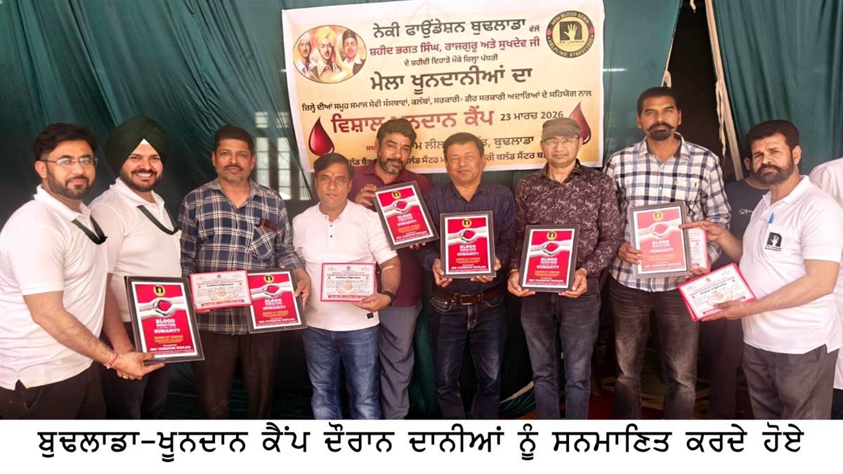 ਚਤਰ ਸਿੰਘ, ਪੰਜਾਬੀ ਜਾਗਰਣ, ਬੁਢਲਾਡਾ : ਇਲਾਕੇ ਦੀ ਸਮਾਜ ਸੇਵੀ ਸੰਸਥਾ ਨੇਕੀ ਫ਼ਾਉਂਡੇਸ਼ਨ ਵੱਲੋਂ ਸ਼ਹੀਦ ਭਗਤ ਸਿੰਘ, ਰਾਜਗੁਰੂ ਤੇ ਸੁਖਦੇਵ ਜੀ ਦੇ ਸ਼ਹੀਦੀ ਦਿਹਾੜੇ ਮੌਕੇ ਜ਼ਿਲ੍ਹੇ ਦੀਆਂ ਸਮੂਹ ਕਲੱਬਾਂ ਅਤੇ ਸੰਸਥਾਵਾਂ ਦੇ ਸਹਿਯੋਗ ਨਾਲ "ਮੇਲਾ ਖੂਨਦਾਨੀਆਂ ਦਾ" ਸਿਰਲੇਖ ਹੇਠ ਇੱਕ ਵਿਸ਼ਾਲ ਖੂਨਦਾਨ ਕੈਂਪ ਦਾ ਆਯੋਜਨ ਕੀਤਾ, ਜਿੱਥੇ 270 ਖੂਨਦਾਨੀਆਂ ਨੇ ਪਹੁੰਚਕੇ ਬੜੇ ਹੀ ਉਤਸ਼ਾਹ ਅਤੇ ਸ਼ਰਧਾ ਨਾਲ ਖੂਨਦਾਨ ਕੀਤਾ ਅਤੇ ਸ਼ਹੀਦਾਂ ਨੂੰ ਸ਼ਰਧਾਂਜਲੀ ਦਿੱਤੀ। ਕੈਂਪ ਦੀ ਵਿਸ਼ੇਸ਼ਤਾ ਇਹ ਰਹੀ ਕਿ ਮਰਦਾਂ ਦੇ ਨਾਲ ਨਾਲ ਔਰਤਾਂ ਨੇ ਵੀ ਵਧ ਚੜ੍ਹਕੇ ਹਿੱਸਾ ਲਿਆ।
