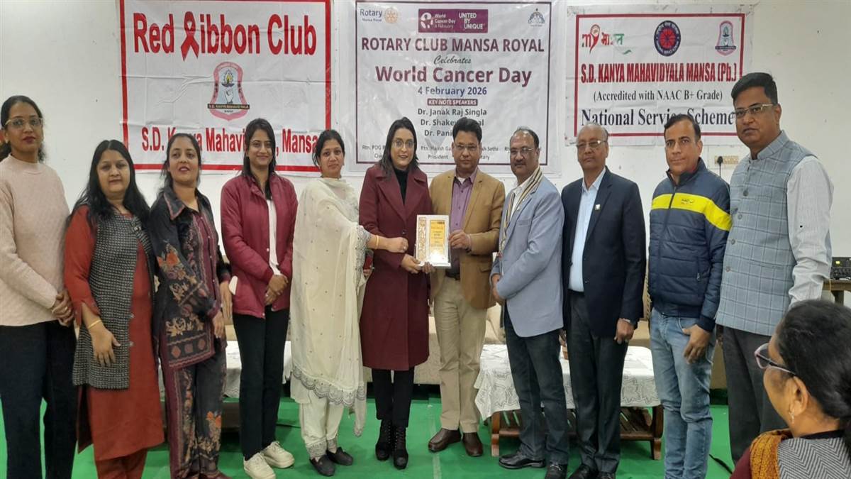 - ਵਿਦਿਆਰਥਣਾਂ ਤੇ ਅਧਿਆਪਕਾਂ ਨੂੰ ਕੈਂਸਰ ਬਾਰੇ ਕੀਤਾ ਜਾਗਰੂਕ ਪੱਤਰ ਪ੍ਰੇਰਕ, ਪੰਜਾਬੀ ਜਾਗਰਣ, ਮਾਨਸਾ : ਰੋਟਰੀ ਕਲੱਬ ਮਾਨਸਾ ਰੌਇਲ ਵੱਲੋਂ ਪ੍ਰਧਾਨ ਹਰੀਸ਼ ਗਰਗ ਦੀ ਪ੍ਰਧਾਨਗੀ ਹੇਠ ਸਥਾਨਕ ਐੱਸਡੀ ਕੰਨਿਆ ਮਹਾਵਿਦਿਆਲਾ ਵਿਖੇ ਕਾਲਜ ਦੇ ਸਹਿਯੋਗ ਨਾਲ ਵਿਸ਼ਵ ਕੈਂਸਰ ਦਿਵਸ 4 ਫ਼ਰਵਰੀ ਮੌਕੇ ਸੈਮੀਨਾਰ ਕਰਵਾਇਆ ਗਿਆ। ਕੈਂਸਰ ਦੀ ਬਿਮਾਰੀ ਸਾਰੀ ਦੂਨੀਆ ਅਤੇ ਹਿੰਦੋਸਤਾਨ ਵਿੱਚ ਖ਼ਾਸ ਤੌਰ ’ਤੇ ਪੰਜਾਬ ਅਤੇ ਮਾਲਵਾ ਖੇਤਰ ਵਿੱਚ ਭਿਆਨਕ ਰੂਪ ਧਾਰਨ ਕਰ ਚੁੱਕੀ ਹੈ, ਜਿਸ ਕਾਰਨ ਲੱਖਾਂ ਲੋਕਾਂ ਦੀਆਂ ਜਾਨਾਂ ਜਾ ਰਹੀਆਂ ਹਨ। ਪਹਿਲੀ ਗੱਲ ਤਾਂ ਪਰਮਾਤਮਾ ਅੱਗੇ ਪ੍ਰਾਰਥਨਾ ਹੈ ਕਿ ਇਹੋ ਜਿਹੀ ਨਾਮੁਰਾਦ ਬਿਮਾਰੀ ਕਿਸੇ ਨੂੰ ਨਾ ਆਵੇ। ਸੈਮੀਨਾਰ ਦਾ ਮੁੱਖ ਮਕਸਦ ਇਸ ਭਿਆਨਕ ਬਿਮਾਰੀ ਖ਼ਿਲਾਫ਼ ਕਾਲਜ ਦੀਆਂ ਵਿਦਿਆਰਥਣਾਂ ਅਤੇ ਅਧਿਆਪਕਾਂ ਨੂੰ ਆਮ ਕੈਂਸਰ ਅਤੇ ਖਾਸ ਤੌਰ ’ਤੇ ਸਰਵਾਈਕਲ ਕੈਂਸਰ ਬਾਰੇ ਜਾਗਰੂਕ ਕੀਤਾ ਜਾਵੇ ਤਾਂ ਜੋ ਮੁੱਢਲੀ ਜਾਂਚ ਉਪਰੰਤ ਇਸ ਬਿਮਾਰੀ ਦਾ ਜਲਦੀ ਪਤਾ ਲੱਗਣ ਤੇ ਸਮੇਂ ਸਿਰ ਇਲਾਜ ਕਰਵਾ ਕੇ ਵੱਡਮੁਲੀਆਂ ਜ਼ਿੰਦਗੀਆਂ ਨੂੰ ਬਚਾਇਆ ਜਾ ਸਕੇ। ਸੈਮੀਨਾਰ ਦੀ ਸ਼ੁਰੂਆਤ ਪ੍ਰਧਾਨ ਨੂੰ ਰੋਟਰੀ ਕਾਲਰ ਪਹਿਨਾਉਣ ਉਪਰੰਤ ਰਾਸ਼ਟਰੀ ਗੀਤ ਨਾਲ ਕੀਤੀ ਗਈ। ਪਰਮਿੰਦਰ ਕੌਰ ਨੇ ਕਾਲਜ ਵੱਲੋਂ ਆਏ ਹੋਏ ਮਹਿਮਾਨਾਂ ਅਤੇ ਡਾਕਟਰਾਂ ਦਾ ਸਵਾਗਤ ਕੀਤਾ। ਡਾ. ਜਨਕ ਰਾਜ ਸਿੰਗਲਾ ਨੇ ਸੈਮੀਨਾਰ ਕਰਨ ਦੇ ਮੰਤਵ ਬਾਰੇ ਦੱਸਦਿਆਂ ਆਪਣੇ ਅਨੁਭਵ ਸਾਂਝੇ ਕਰਦੇ ਹੋਏ ਕੈਂਸਰ ਨਾਲ ਸੰਘਰਸ਼ ਕਰਨ ਦੀ ਪ੍ਰੇਰਨਾ ਦਿੱਤੀ। ਉਨ੍ਹਾਂ ਦੱਸਿਆ ਕਿ ਕੈਂਸਰ ਤੋਂ ਡਰਨ ਦੀ ਲੋੜ ਨਹੀਂ, ਬਲਕਿ ਸਮੇਂ ਸਿਰ ਮੁੱਢਲੀ ਪਛਾਣ ਜ਼ਰੂਰੀ ਹੈ। ਜੇਕਰ ਇਸ ਦੀ ਸ਼ੁਰੂਆਤੀ ਪਛਾਣ ਹੋਣ ਉਪਰੰਤ ਸਮੇਂ ਸਿਰ ਇਲਾਜ ਹੋ ਜਾਵੇ ਤਾਂ ਇਸ ਬਿਮਾਰੀ ਨੂੰ ਹਰਾਇਆ ਜਾ ਸਕਦਾ ਹੈ। ਉਨ੍ਹਾਂ ਨੇ ਸਿਹਤਮੰਦ ਜੀਵਨਸ਼ੈਲੀ, ਪੋਸ਼ਟਿਕ ਭੋਜਨ, ਤਮਾਕੂ ਅਤੇ ਨਸ਼ਿਆਂ ਤੋਂ ਦੂਰ ਰਹਿਣਾ, ਨਿਯਮਿਤ ਸਿਹਤ ਜਾਂਚ ਦੀ ਅਪੀਲ ਕੀਤੀ। ਡਾ. ਸ਼ੇਕੀ ਬਾਂਸਲ ਨੇ ਦੱਸਿਆ ਕਿ ਅਸਲ ਵਿੱਚ ਸਰਵਾਈਕਲ ਕੈਂਸਰ ਕੀ ਹੈ ਅਤੇ ਇਸ ਤੋਂ ਕਿਵੇਂ ਬਚਿਆ ਜਾ ਸਕਦਾ ਹੈ। ਇਹ ਬਿਮਾਰੀ ਅਕਸਰ ਅਗਿਆਨਤਾ ਕਾਰਨ ਦੇਰ ਨਾਲ ਪਤਾ ਲੱਗਦੀ ਹੈ। ਉਨ੍ਹਾਂ ਔਰਤਾਂ ਨੂੰ ਐੱਚਪੀਵੀ ਟੀਕਾਕਰਨ, ਨਿਯਮਿਤ ਪੈਪ ਸਮੀਅਰ ਟੈਸਟ ਅਤੇ ਗਾਇਨੋਕੋਲੋਜਿਸਟ ਨਾਲ ਸਮੇਂ-ਸਮੇਂ ’ਤੇ ਸਲਾਹ ਕਰਨ ਦੀ ਅਪੀਲ ਕੀਤੀ। ਉਨ੍ਹਾਂ ਕਿਹਾ ਕਿ ਥੋੜ੍ਹੀ ਜਿਹੀ ਸਾਵਧਾਨੀ ਨਾਲ ਇਸ ਘਾਤਕ ਬਿਮਾਰੀ ਤੋਂ ਬਚਿਆ ਜਾ ਸਕਦਾ ਹੈ। ਡਾ. ਪਨਿਕਾ ਗਰਗ ਨੇ ਔਰਤਾਂ ਦੀ ਸਿਹਤ ਨਾਲ ਜੁੜੇ ਵਿਸ਼ੇ ਮਹਾਵਾਰੀ ਸਾਇਕਲ ਤੇ ਵਿਸਥਾਰ ਨਾਲ ਜਾਣਕਾਰੀ ਦਿੰਦੇ ਹੋਏ ਕਿਹਾ ਕਿ ਮਹਾਵਾਰੀ ਇੱਕ ਕੁਦਰਤੀ ਪ੍ਰਕਿਰਿਆ ਹੈ, ਜਿਸ ਬਾਰੇ ਖੁੱਲ੍ਹ ਕੇ ਗੱਲ ਕਰਨੀ ਬਹੁਤ ਜ਼ਰੂਰੀ ਹੈ। ਉਨ੍ਹਾਂ ਨੇ ਸਾਫ਼-ਸਫ਼ਾਈ, ਸਹੀ ਪੋਸ਼ਣ ਅਤੇ ਕਿਸੇ ਵੀ ਅਸਾਧਾਰਨ ਲੱਛਣ ਦੀ ਸਥਿਤੀ ਵਿੱਚ ਤੁਰੰਤ ਡਾਕਟਰੀ ਸਲਾਹ ਲੈਣ ਦੀ ਮਹੱਤਤਾ ’ਤੇ ਜ਼ੋਰ ਦਿੱਤਾ। ਇਸ ਮੌਕੇ ਪ੍ਰੇਮ ਅੱਗਰਵਾਲ ਨੇ ਕਿਹਾ ਕਿ ਰੋਟਰੀ ਹਮੇਸ਼ਾ ਸਿਹਤ, ਸਿੱਖਿਆ ਅਤੇ ਸਮਾਜਿਕ ਭਲਾਈ ਲਈ ਕੰਮ ਕਰਦੀ ਆਈ ਹੈ ਅਤੇ ਇਸ ਤਰ੍ਹਾਂ ਦੇ ਜਾਗਰੂਕਤਾ ਪ੍ਰੋਗਰਾਮ ਸਮਾਜ ਨੂੰ ਸਿਹਤਮੰਦ ਬਣਾਉਣ ਵਿੱਚ ਮੀਲ ਪੱਥਰ ਸਾਬਤ ਹੁੰਦੇ ਹਨ। ਉਨ੍ਹਾਂ ਕਿਹਾ ਕਿ ਆਉਣ ਵਾਲੀ 14 ਅਤੇ 15 ਫਰਵਰੀ 2026 ਨੂੰ ਕਲੱਬ ਵੱਲੋਂ ਦੋ ਦਿਨਾਂ ਰੋਟਰੀ ਯੂਥ ਲੀਡਰਸ਼ਿਪ ਐਵਾਰਡ ਪ੍ਰੋਗਰਾਮ ਚੇਤਣਾ ਸਿਰਫ ਲੜਕੀਆਂ ਲਈ ਇਸੇ ਕਾਲਜ ਵਿੱਚ ਕਰਵਾਇਆ ਜਾ ਰਿਹਾ ਹੈ, ਜਿਸ ਵਿੱਚ ਵੱਧ ਤੋਂ ਵੱਧ ਵਿਦਿਆਰਥੀਆਂ ਨੂੰ ਹਿੱਸਾ ਲੈਣ ਦੀ 