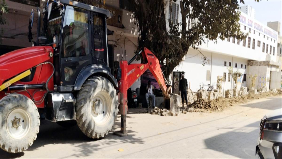ਵਾਟਰ ਪਾਈਪ ਪਾਉਣ ਲਈ ਜੇਸੀਬੀ ਮਸ਼ੀਨ ਨਾਲ ਪੁੱਟੀ ਜਾ ਰਹੀ ਹੈ ਇੰਟਰਲਾਕ ਸੜਕ