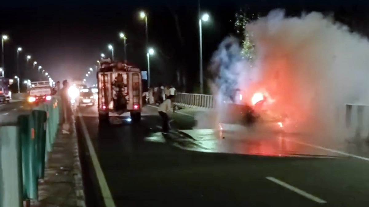 ਸੜਕ 'ਤੇ ਚੱਲਦੀ ਰੇਂਜ ਰੋਵਰ ਨੂੰ ਪਈਆਂ ਅੱਗ ਦੀਆਂ ਲਪਟਾਂ; ਜੋੜੇ ਦੀ ਮੁਸਤੈਦੀ ਨਾਲ ਟਲਿਆ ਵੱਡਾ ਹਾਦਸਾ
