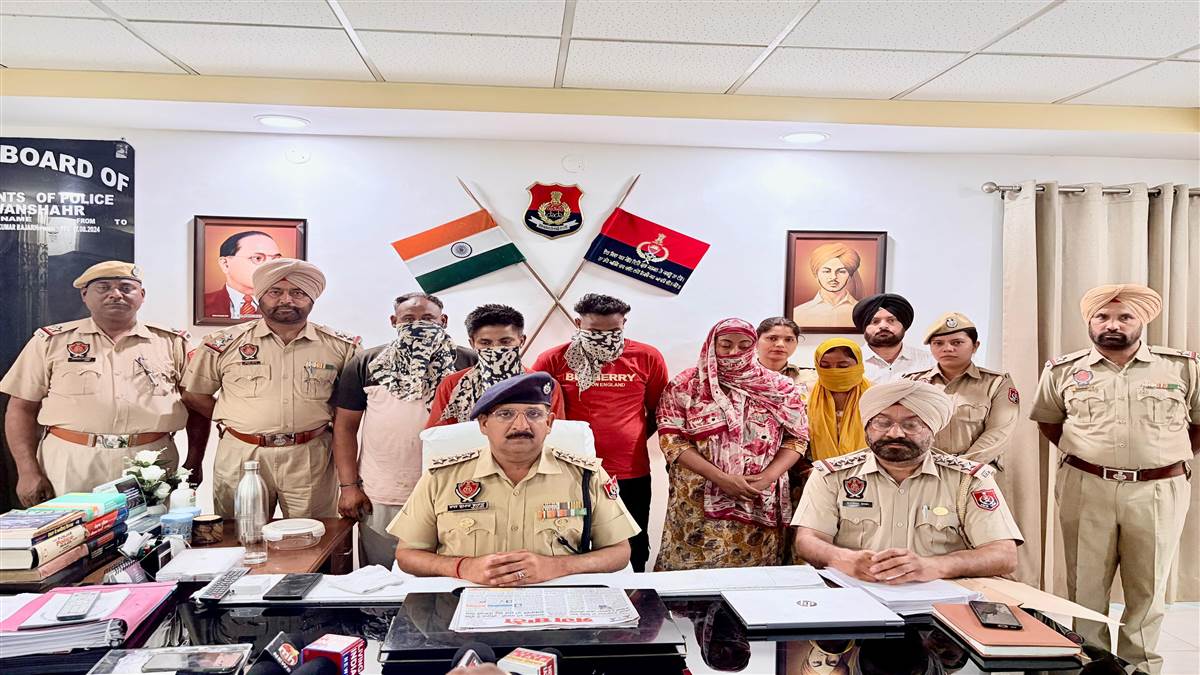 ਪੁਲਿਸ ਨੇ 100 ਗ੍ਰਾਮ ਹੈਰੋਇਨ, 13 ਨਸ਼ੀਲੇ ਟੀਕੇ, ਇਕ ਸਵਿਫਟ ਕਾਰ, 2,75,040 ਰੁਪਏ ਡਰੱਗ ਮਨੀ ਸਮੇਤ ਤਿੰਨ ਵਿਅਕਤੀਆਂ ਅਤੇ ਦੋ ਔਰਤਾਂ ਨੂੰ ਕਾਬੂ ਕੀਤਾ ਹੈ। ਪ੍ਰਾਪਤ ਜਾਣਕਾਰੀ ਅਨੁਸਾਰ ਡੀਐੱਸਪੀ ਨਵਾਂਸ਼ਹਿਰ ਰਾਜ ਕੁਮਾਰ ਬਜਾੜ ਨੇ ਦੱਸਿਆ ਕਿ ਐੱਸਐੱਸਪੀ ਤੁਸ਼ਾਰ ਗੁਪਤਾ ਦੀਆਂ ਹਦਾਇਤਾਂ ’ਤੇ ਪੰਜਾਬ ਸਰਕਾਰ ਵੱਲੋਂ ਨਸ਼ੇ ਖਿਲਾਫ ਚਲਾਈ ਮੁਹਿੰਮ ਤਹਿਤ ਕਾਰਵਾਈ ਕਰਦਿਆਂ ਪੁਲਿਸ ਥਾਣਾ ਔੜ ਨੂੰ ਉਸ ਸਮੇਂ ਸਫਲਤਾ ਮਿਲੀ ਜਦੋਂ ਪੁਲਿਸ ਥਾਣਾ ਔੜ ਦੇ ਐੱਸਐੱਚਓ ਸੁਖਪਾਲ ਸਿੰਘ ਨੇ ਦੱਸਿਆ ਕਿ ਮੁਖਵਰ ਖਾਸ ਦੀ ਇਤਲਾਹ ’ਤੇ ਦੇਵ ਰਾਜ ਉਰਫ ਦੇਬੀ ਪੁੱਤਰ ਜੀਤ ਰਾਮ ਅਤੇ ਪਾਸੋਂ ਉਰਫ ਪਾਲੋ ਜੱਟੀ ਵਾਸੀਆਨ ਗੜੁਪੜ ਦੇ ਘਰ ਰੇਡ ਕਰਨ ਜਾ ਰਹੇ ਸੀ।