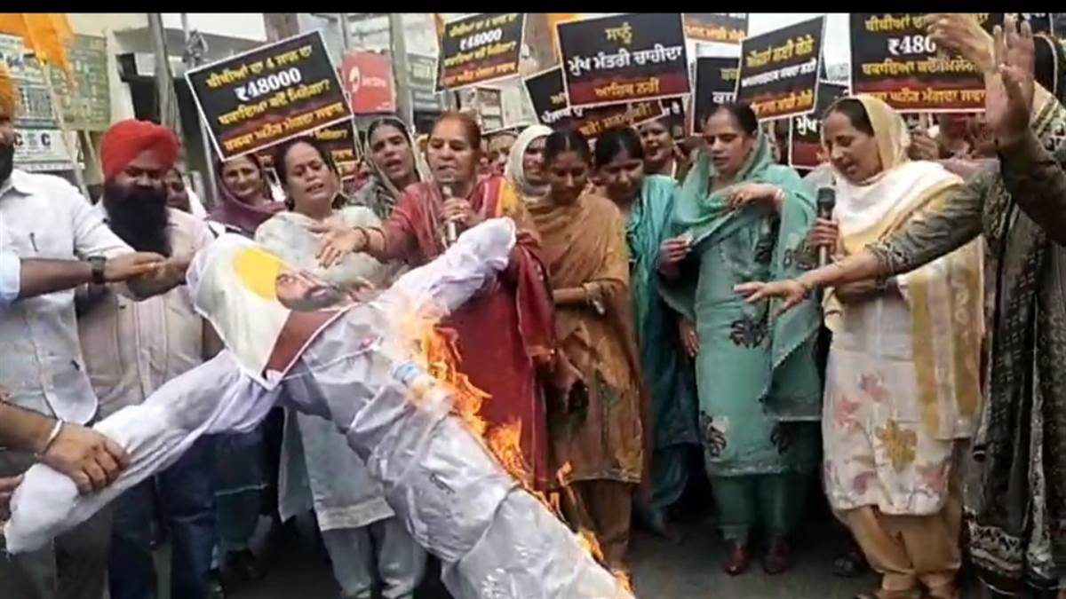 ਮੁੱਖ ਮੰਤਰੀ ਦੇ ਬਿਆਨ ਖ਼ਿਲਾਫ਼ ਘਨੌਰ ਵਿੱਚ ਮਹਿਲਾਵਾਂ ਦਾ ਤਿੱਖਾ ਪ੍ਰਦਰਸ਼ਨ, ਪੁਤਲਾ ਸਾੜ ਕੇ ਕੀਤਾ ਪਿੱਟ ਸਿਆਪਾ