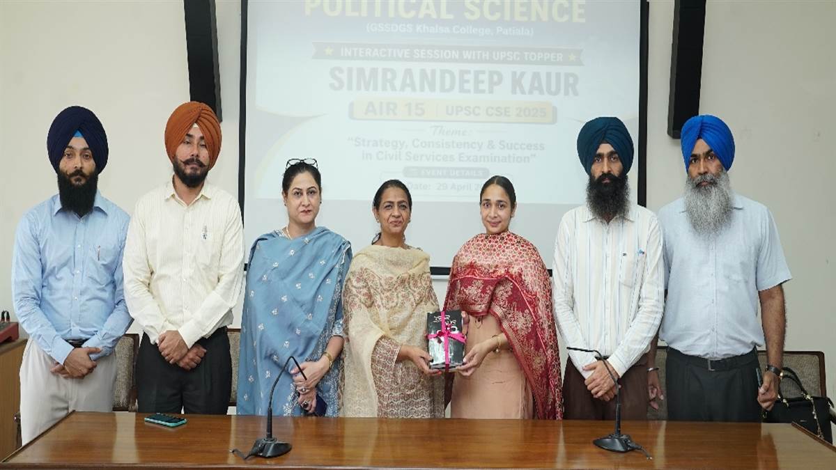 ਪੱਤਰ ਪ੍ਰੇਰਕ, ਪੰਜਾਬੀ ਜਾਗਰਣ, ਪਟਿਆਲਾ : ਖ਼ਾਲਸਾ ਕਾਲਜ ਪਟਿਆਲਾ ਦੇ ਪੋਲੀਟੀਕਲ ਸਾਇੰਸ ਵਿਭਾਗ ਵੱਲੋਂ ਵਿਦਿਆਰਥੀਆਂ ਨੂੰ ਮੁਕਾਬਲੇ ਦੀਆਂ ਪ੍ਰੀਖਿਆਵਾਂ ਪ੍ਰਤੀ ਜਾਗਰੂਕ ਕਰਨ ਲਈ ਇੱਕ ਵਿਸ਼ੇਸ਼ ਇੰਟਰਐਕਟਿਵ ਸੈਸ਼ਨ ਕਰਵਾਇਆ ਗਿਆ। ਪ੍ਰੋਗਰਾਮ ਵਿਚ ਮੁੱਖ ਬੁਲਾਰੇ ਵਜੋਂ ਕਾਲਜ ਦੀ ਸਾਬਕਾ ਵਿਦਿਆਰਥਣ ਸਿਮਰਨਦੀਪ ਕੌਰ ਨੇ ਸ਼ਿਰਕਤ ਕੀਤੀ, ਜਿਨ੍ਹਾਂ ਨੇ ਯੂਪੀਐੱਸਸੀ ਪ੍ਰੀਖਿਆ 2025 ਵਿਚ ਦੇਸ਼ ਭਰ ’ਚੋਂ 15ਵਾਂ ਰੈਂਕ ਹਾਸਲ ਕਰਕੇ ਸੰਸਥਾ ਦਾ ਨਾਮ ਰੌਸ਼ਨ ਕੀਤਾ ਹੈ। ਕਾਲਜ ਪ੍ਰਿੰਸੀਪਲ ਡਾ. ਧਰਮਿੰਦਰ ਸਿੰਘ ਉੱਭਾ ਨੇ ਸਿਮਰਨਦੀਪ ਦਾ ਸਵਾਗਤ ਕਰਦਿਆਂ ਕਿਹਾ ਕਿ ਕਿਸੇ ਸੰਸਥਾ ਲਈ ਇਸ ਤੋਂ ਵੱਡੀ ਮਾਣ ਵਾਲੀ ਗੱਲ ਨਹੀਂ ਹੋ ਸਕਦੀ ਕਿ ਉਸ ਦਾ ਵਿਦਿਆਰਥੀ ਦੇਸ਼ ਦੇ ਸਰਵਉੱਚ ਪ੍ਰਸ਼ਾਸਨਿਕ ਅਹੁਦੇ ’ਤੇ ਬਿਰਾਜਮਾਨ ਹੋਵੇ। ਉਨ੍ਹਾਂ ਕਿਹਾ ਕਿ ਸਿਮਰਨਦੀਪ ਦੀ ਸਖ਼ਤ ਮਿਹਨਤ ਮੌਜੂਦਾ ਵਿਦਿਆਰਥੀਆਂ ਲਈ ਪ੍ਰੇਰਨਾ ਸਰੋਤ ਹੈ। ਡਿਪਟੀ ਪ੍ਰਿੰਸੀਪਲ ਜਸਲੀਨ ਕੌਰ ਨੇ ਸੰਬੋਧਨ ਕਰਦਿਆਂ ਕਿਹਾ ਕਿ ਜੇਕਰ ਇਰਾਦਾ ਦ੍ਰਿੜ ਹੋਵੇ ਤਾਂ ਕੋਈ ਵੀ ਮੁਕਾਮ ਹਾਸਲ ਕੀਤਾ ਜਾ ਸਕਦਾ ਹੈ। ਉਨ੍ਹਾਂ ਵਿਦਿਆਰਥੀਆਂ ਨੂੰ ਅਪੀਲ ਕੀਤੀ ਕਿ ਉਹ ਸਿਮਰਨਦੀਪ ਦੇ ਨਕਸ਼ੇ-ਕਦਮਾਂ ’ਤੇ ਚੱਲਦਿਆਂ ਅਕਾਦਮਿਕ ਖੇਤਰ ਦੇ ਨਾਲ-ਨਾਲ ਮੁਕਾਬਲੇ ਦੀਆਂ ਪ੍ਰੀਖਿਆਵਾਂ ਵਿਚ ਵੀ ਮੱਲਾਂ ਮਾਰਨ। ਵਿਭਾਗ ਮੁਖੀ ਡਾ. ਜਗਤਾਰ ਸਿੰਘ ਨੇ ਦੱਸਿਆ ਕਿ ਸਿਮਰਨਦੀਪ ਹਮੇਸ਼ਾ ਹੀ ਹੋਣਹਾਰ ਰਹੀ ਹੈ ਅਤੇ ਅੱਜ ਦਾ ਸੈਸ਼ਨ ਵਿਦਿਆਰਥੀਆਂ ਦੇ ਮਨਾਂ ’ਚੋਂ ਪ੍ਰੀਖਿਆ ਦਾ ਡਰ ਕੱਢਣ ਲਈ ਅਹਿਮ ਹੈ। ਸਿਮਰਨਦੀਪ ਕੌਰ ਨੇ ਵਿਦਿਆਰਥੀਆਂ ਨੂੰ ਤਿਆਰੀ ਦੇ ਨੁਕਤੇ ਦੱਸਦਿਆਂ ਕਿਹਾ ਕਿ ਸਫ਼ਲਤਾ ਲਈ ਕੋਈ ਸ਼ਾਰਟਕੱਟ ਨਹੀਂ ਹੁੰਦਾ, ਸਿਰਫ਼ ਲਗਾਤਾਰ ਪੜ੍ਹਾਈ ਅਤੇ ਸਹੀ ਰਣਨੀਤੀ ਹੀ ਮੰਜ਼ਿਲ ਤੱਕ ਪਹੁੰਚਾਉਂਦੀ ਹੈ। ਉਨ੍ਹਾਂ ਵਿਦਿਆਰਥੀਆਂ ਦੇ ਸਵਾਲਾਂ ਦੇ ਜਵਾਬ ਦੇ ਕੇ ਉਨ੍ਹਾਂ ਨੂੰ ਸਿਵਲ ਸੇਵਾਵਾਂ ਲਈ ਉਤਸ਼ਾਹਿਤ ਕੀਤਾ। ਇਸ ਮੌਕੇ ਰਜਿਸਟਰਾਰ ਇੰਦਰਬੀਰ ਕੌਰ,ਪ੍ਰੋ. ਗੁਰਪਾਲ ਸਿੰਘ , ਡਾ ਸਰਬਜੀਤ ਸਿੰਘ,ਸਮੇਤ ਸਮੂਹ ਸਟਾਫ਼ ਅਤੇ ਵੱਡੀ ਗਿਣਤੀ ਵਿੱਚ ਵਿਦਿਆਰਥੀ ਹਾਜ਼ਰ ਸਨ।