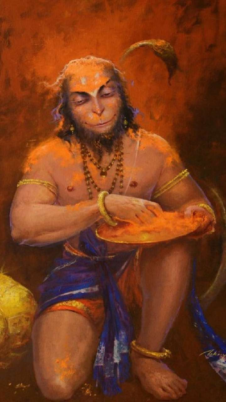 ਹਨੂੰਮਾਨ ਜੀ ਨੇ ਸੋਚਿਆ ਕਿ ਜੇ ਥੋੜਾ ਜਿਹਾ ਸਿੰਦੂਰ ਲਗਾਉਣ ਨਾਲ ਇੰਨਾ ਲਾਭ ਹੁੰਦੈ, ਤਾਂ ਪੂਰੇ ਸਰੀਰ 'ਤੇ ਸਿੰਦੂਰ ਲਗਾਉਣ ਨਾਲ ਪ੍ਰਭੂ ਅਮਰ ਹੋ ਜਾਣਗੇ। ਇਸ ਦੇ ਨਾਲ ਹੀ ਹਨੂੰਮਾਨ ਜੀ ਨੇ ਆਪਣੇ ਸਰੀਰ 'ਤੇ ਸਿੰਦੂਰ ਲਗਾਇਆ।