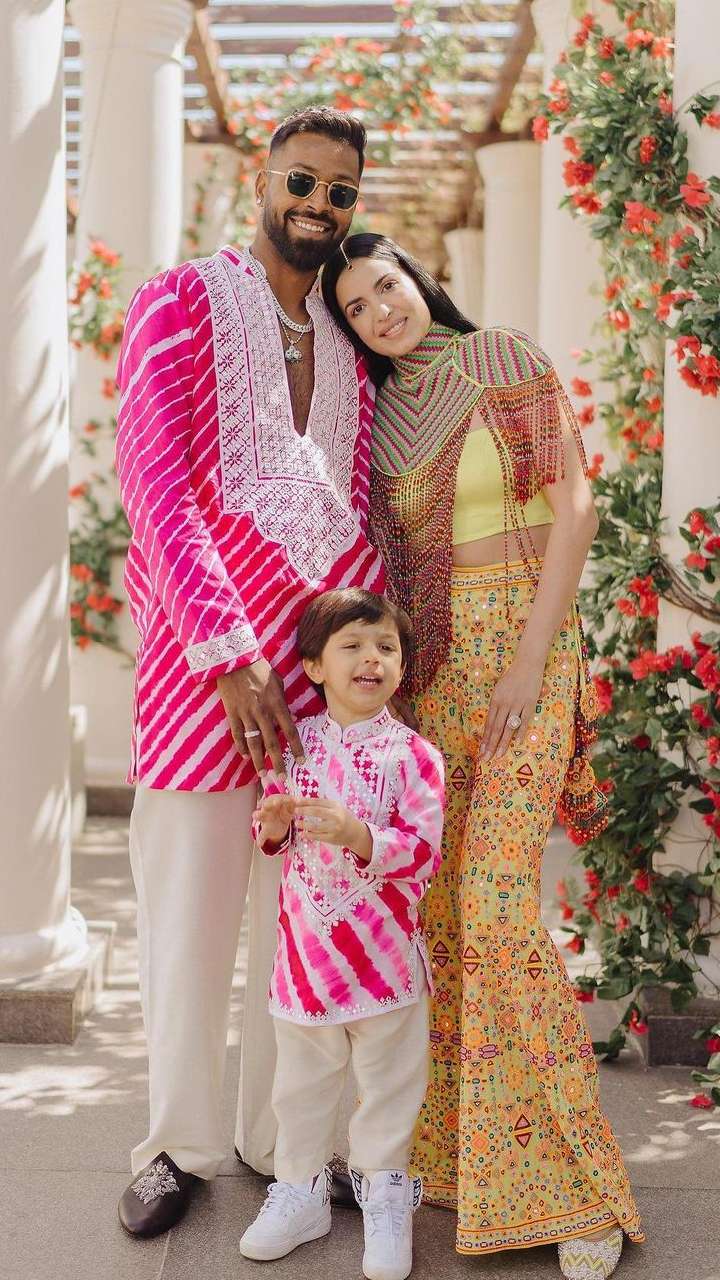 ਹਾਰਦਿਕ ਪਾਂਡਿਆ ਨੇ ਸ਼ੀਸ਼ੇ ਦੇ ਸਜਾਵਟ ਤੇ ਐਪਲੀਕ ਵਰਕ ਦੇ ਨਾਲ ਇੱਕ ਰਵਾਇਤੀ ਗੁਲਾਬੀ ਤੇ ਚਿੱਟੇ ਲਹਿਰੀਆ ਰੇਸ਼ਮ ਦਾ ਕੁੜਤਾ ਪਾਇਆ ਸੀ। ਉਸ ਨੇ ਚਿੱਟੇ ਰੰਗ ਦੀ ਸਿੱਧੀ-ਫਿੱਟ ਪੈਂਟ ਨਾਲ ਆਪਣਾ ਲੁੱਕ ਪੂਰਾ ਕੀਤਾ।