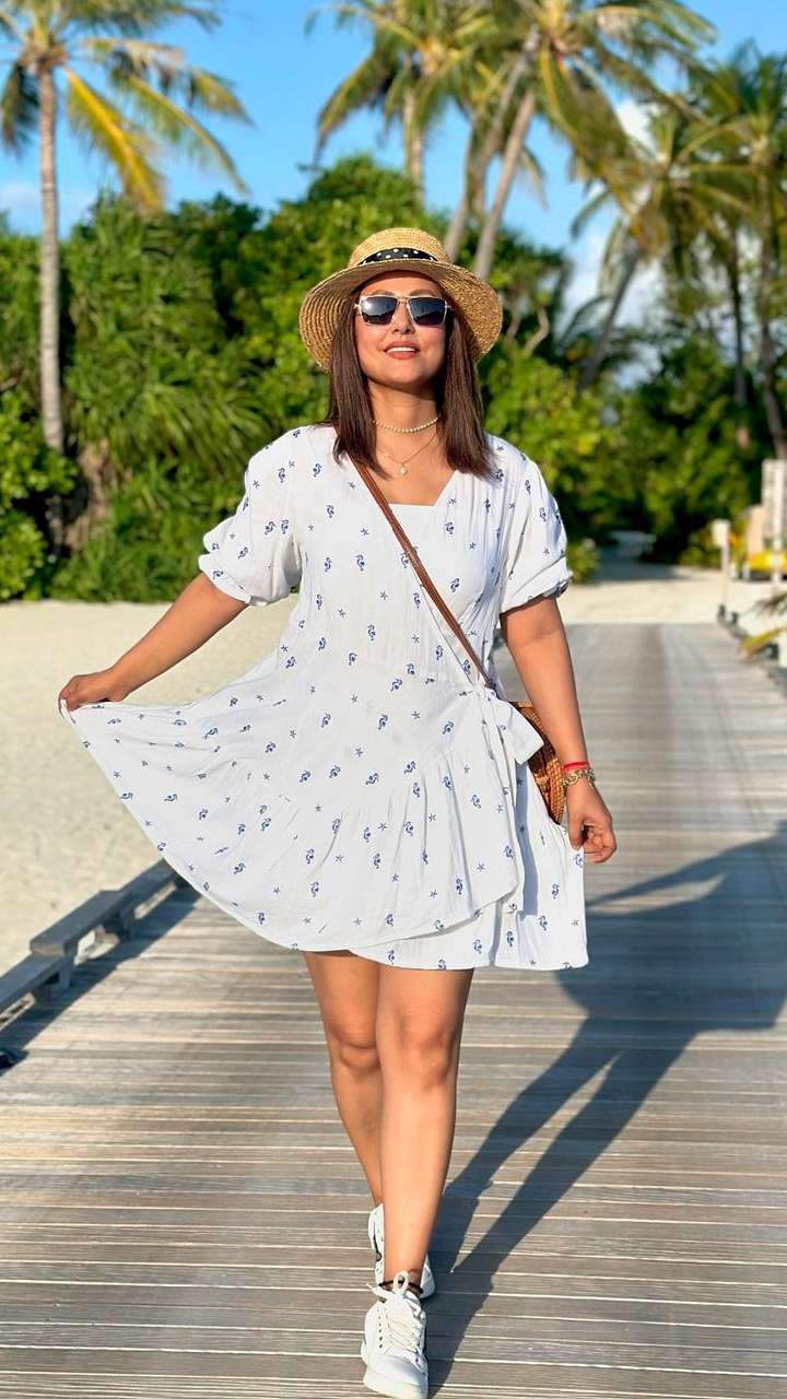 ਇਨ੍ਹਾਂ ਵੇਕੇਸ਼ਨ ਤਸਵੀਰਾਂ 'ਚ ਹਿਨਾ ਖਾਨ ਮਾਲਦੀਵ ਦੇ ਬੀਚ 'ਤੇ ਪੋਜ਼ ਦੇ ਰਹੀ ਹੈ। ਇਸ ਤਸਵੀਰ 'ਚ ਉਹ ਕੈਮਰੇ ਵੱਲ ਦੇਖਦੀ ਨਜ਼ਰ ਆ ਰਹੀ ਹੈ।