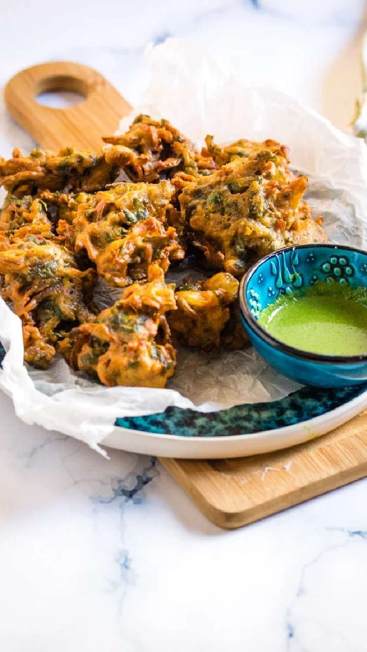 ਪੈਨ ਵਿੱਚ ਤੇਲ ਗਰਮ ਕਰੋ। ਆਪਣੇ ਹੱਥਾਂ ਨੂੰ ਤੇਲ ਲਗਾਓ ਅਤੇ ਤਿਆਰ ਕੀਤੇ ਮਿਸ਼ਰਣ ਦੇ ਛੋਟੇ-ਛੋਟੇ ਟੁਕੜੇ ਲਓ ਅਤੇ ਪਕੌੜਿਆਂ ਨੂੰ ਪੈਨ ਵਿੱਚ ਪਾਓ। ਸੁਨਹਿਰੀ ਕਰਿਸਪੀ ਹੋਣ ਤੱਕ ਭੁੰਨੋ। ਹਰੀ ਚਟਨੀ ਜਾਂ ਸਾਸ ਨਾਲ ਪਰੋਸੋ।