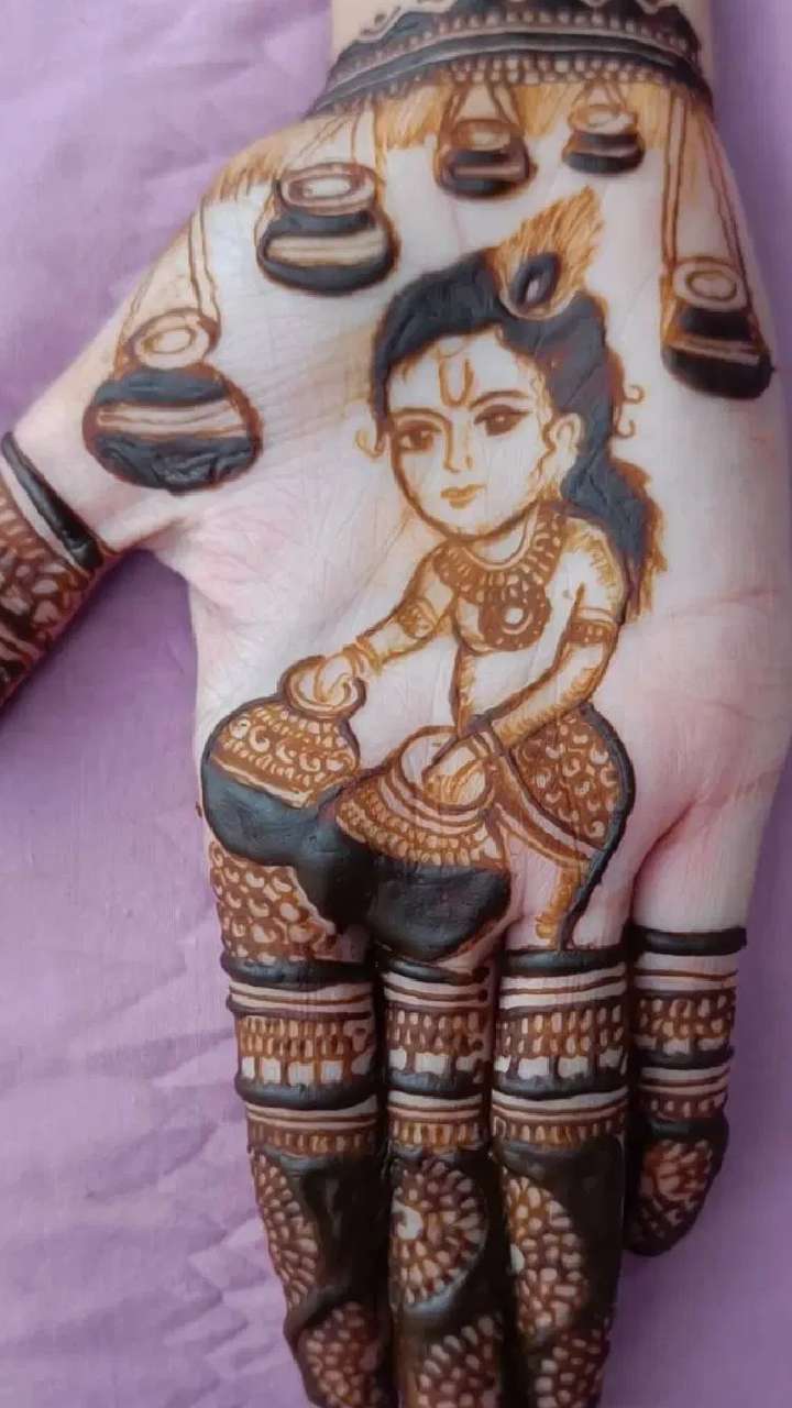ਜਨਮ ਅਸ਼ਟਮੀ 'ਤੇ ਮਹਿੰਦੀ ਵਿੱਚ ਰਾਧਾ-ਕ੍ਰਿਸ਼ਨ ਜੋੜੇ ਨੂੰ ਦਰਸਾਉਣਾ ਇੱਕ ਵਧੀਆ ਵਿਚਾਰ ਹੈ। ਤੁਸੀਂ ਆਪਣੇ ਹੱਥ ਦੀ ਹਥੇਲੀ ਜਾਂ ਆਪਣੇ ਹੱਥ ਦੇ ਪਿਛਲੇ ਪਾਸੇ ਰਾਧਾ ਅਤੇ ਕ੍ਰਿਸ਼ਨ ਦੀ ਸ਼ਕਲ ਬਣਾ ਸਕਦੇ ਹੋ।
