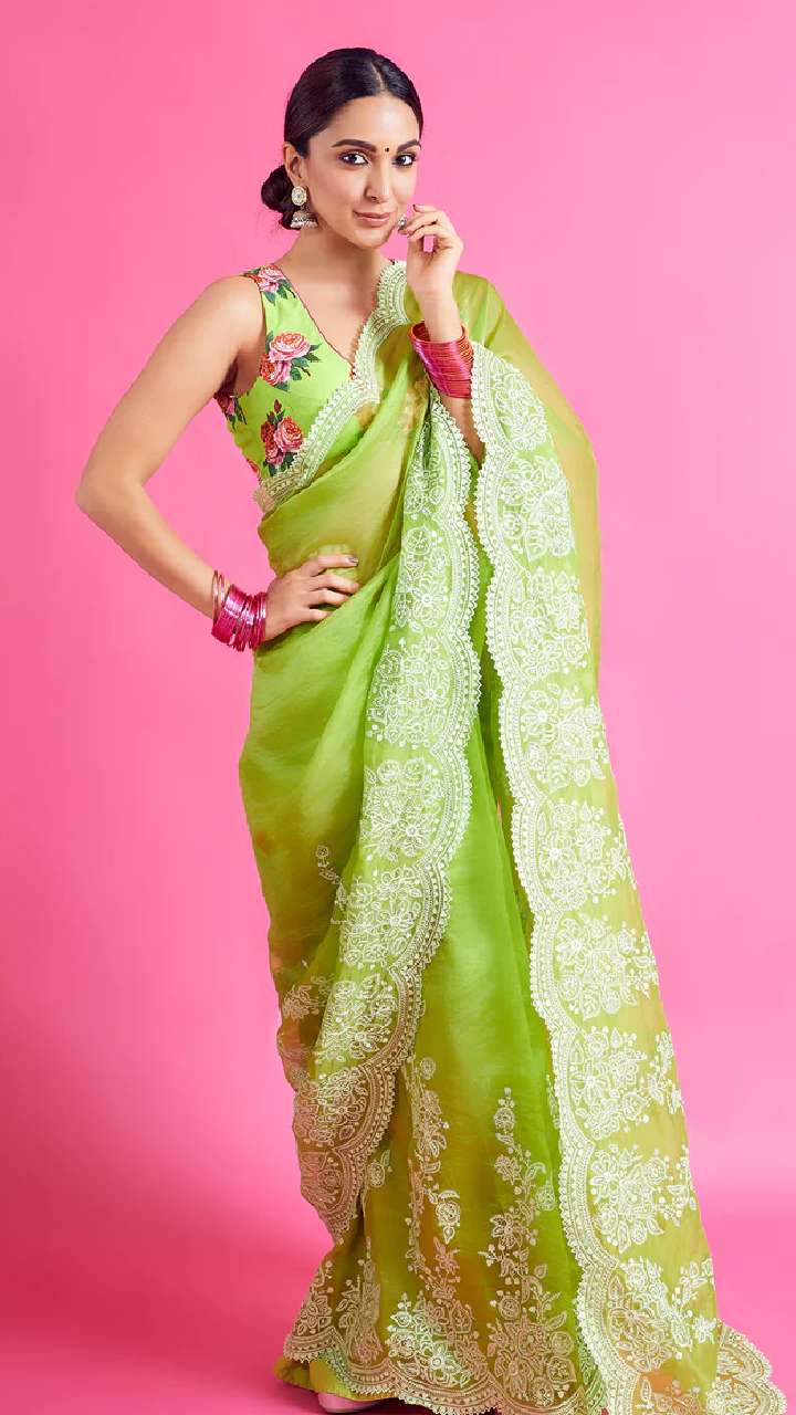 ਇਸ ਹਰੇ ਰੰਗ ਦੀ ਸਾੜ੍ਹੀ 'ਚ ਕਿਆਰਾ ਅਡਵਾਨੀ ਬੇਹੱਦ ਖੂਬਸੂਰਤ ਲੱਗ ਰਹੀ ਹੈ। ਇਸ ਤੋਂ ਇਲਾਵਾ, ਇਸ ਸੀਕੁਇਨ ਦੇ ਨਾਲ ਸਟ੍ਰੈਪਲੇਸ ਬਲਾਊਜ਼ ਉਸ ਦੀ ਦਿੱਖ ਵਿੱਚ ਸੁਹਜ ਵਧਾ ਰਿਹਾ ਹੈ।
