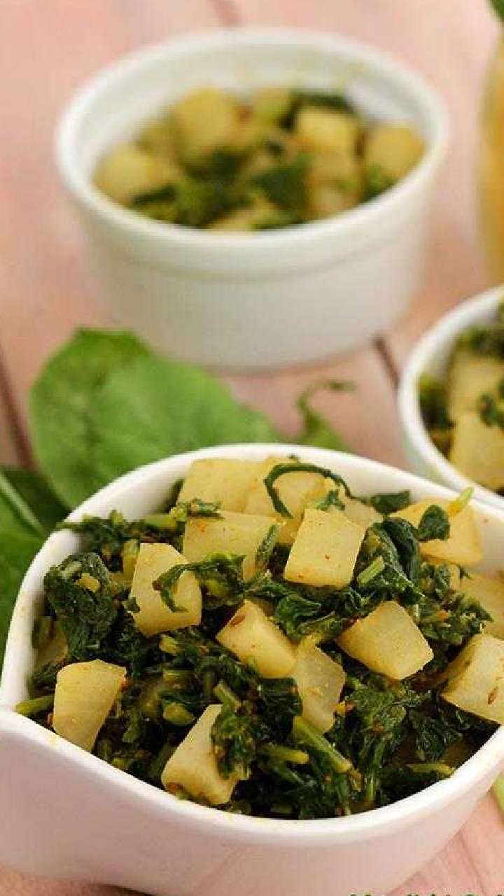 ਮੂਲੀ 2 ਬਾਰੀਕ ਕੱਟੀ ਹੋਈ, ਮੂਲੀ ਦੇ ਪੱਤੇ 1 ਕੱਪ, ਪਿਆਜ਼ 1, ਅਦਰਕ 1 ਇੰਚ, ਹਰੀ ਮਿਰਚ 2-3, ਸਰ੍ਹੋਂ ਦਾ ਤੇਲ 2 ਚੱਮਚ, ਅਜਾਵਾਇਨ 1 ਚਮਚ, ਹੀਂਗ ¼ ਚਮਚ, ਹਲਦੀ ਪਾਊਡਰ ½, ਮਿਰਚ ਪਾਊਡਰ ½ ਚਮਚ, ਨਮਕ।