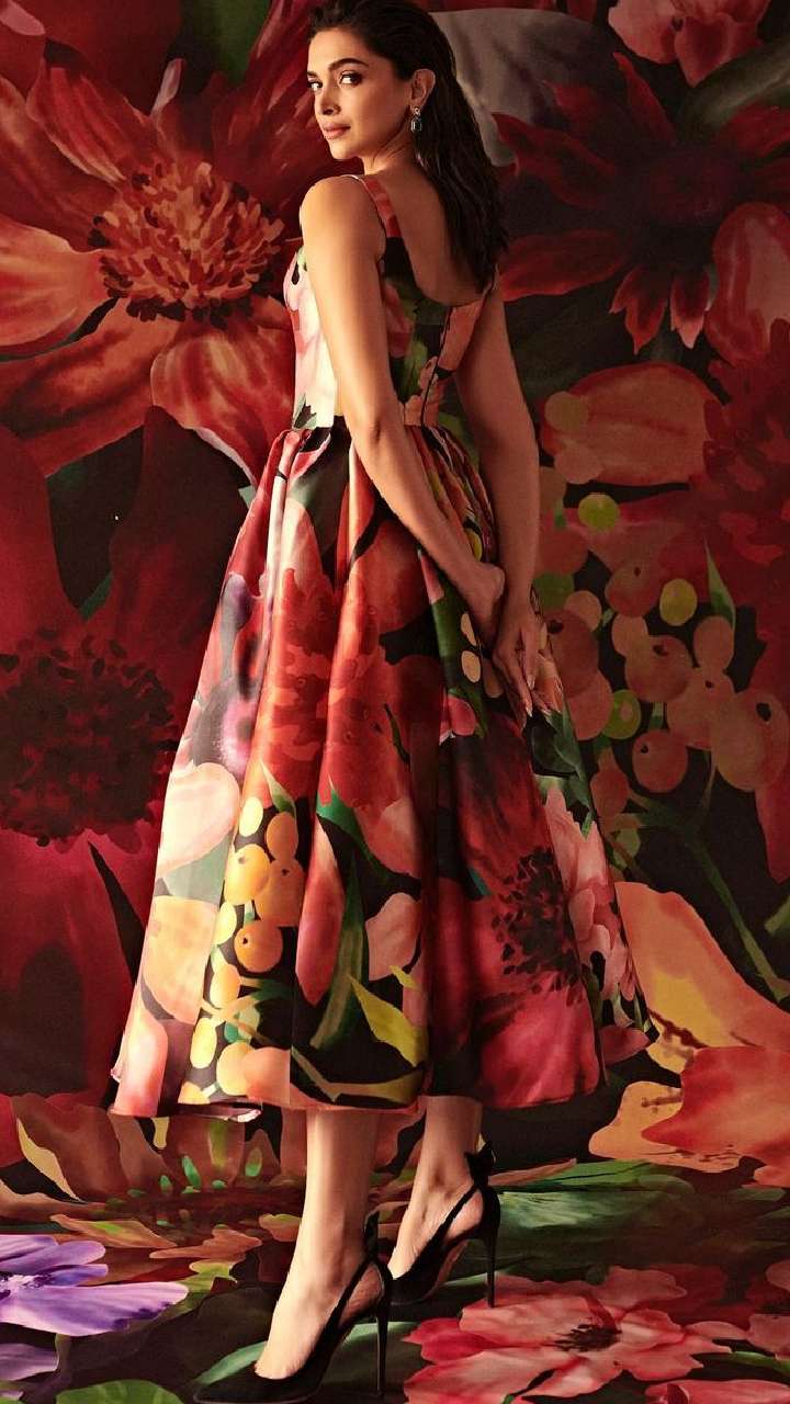 ਦੀਪਿਕਾ ਪਾਦੁਕੋਣ ਨੇ ਗੁਲਾਬੀ, ਹਰੇ ਅਤੇ ਪੀਲੇ ਰੰਗ ਵਿੱਚ ਵੱਡੇ ਫਲੋਰਲ ਪ੍ਰਿੰਟ ਵਾਲਾ ਬਲੈਕ ਗਾਊਨ ਪਾਇਆ ਹੋਇਆ ਸੀ।