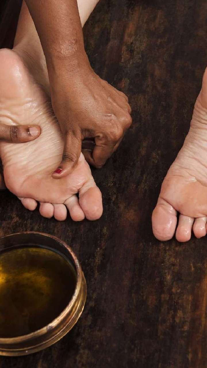 ਪੈਰਾਂ ਵਿੱਚ ਬਹੁਤ ਸਾਰੇ ਮਹੱਤਵਪੂਰਨ ਐਕਿਊਪ੍ਰੈਸ਼ਰ ਪੁਆਇੰਟ ਹਨ। ਇਨ੍ਹਾਂ ਪੁਆਇੰਟਾਂ ਦੀ ਮਾਲਿਸ਼ ਕਰਨ ਨਾਲ ਸਰੀਰ ਦੇ ਅੰਗਾਂ ਨੂੰ ਸੰਤੁਲਿਤ ਕਰਨ ਅਤੇ ਜ਼ਹਿਰੀਲੇ ਪਦਾਰਥਾਂ ਨੂੰ ਦੂਰ ਕਰਨ ਵਿੱਚ ਮਦਦ ਮਿਲਦੀ ਹੈ। ਨਾਰੀਅਲ ਤੇਲ ਇਸ ਪ੍ਰਕਿਰਿਆ ਵਿੱਚ ਮਦਦ ਕਰਦਾ ਹੈ ਕਿਉਂਕਿ ਇਹ ਚਮੜੀ ਵਿੱਚ ਡੂੰਘਾਈ ਨਾਲ ਪ੍ਰਵੇਸ਼ ਕਰਦਾ ਹੈ।