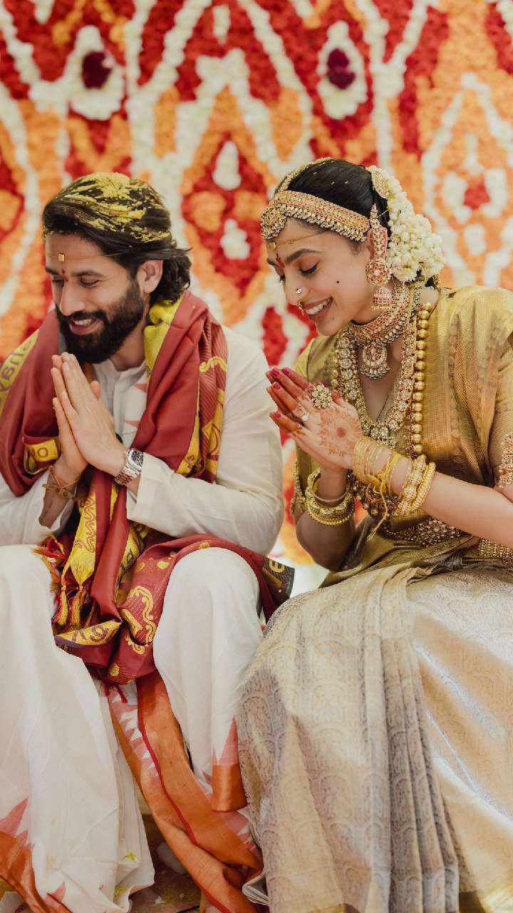 ਅਭਿਨੇਤਾ ਨਾਗਾ ਚੈਤੰਨਿਆ ਅਕੀਨੇਨੀ ਲਾੜੇ ਦੇ ਲੁੱਕ ਵਿੱਚ ਸ਼ਾਨਦਾਰ ਨਜ਼ਰ ਆ ਰਹੇ ਹਨ। ਉੱਥੇ ਹੀ ਅਭਿਨੇਤਰੀ ਸ਼ੋਭਿਤਾ ਬ੍ਰਾਈਡਲ ਅਵਤਾਰ 'ਚ ਬਹੁਤ ਵਧੀਆ ਲੱਗ ਰਹੀ ਹੈ ਅਤੇ ਉਹ ਗੋਲਡਨ ਸਾੜ੍ਹੀ 'ਚ ਹੋਰ ਵੀ ਖੂਬਸੂਰਤ ਲੱਗ ਰਹੀ ਹੈ।