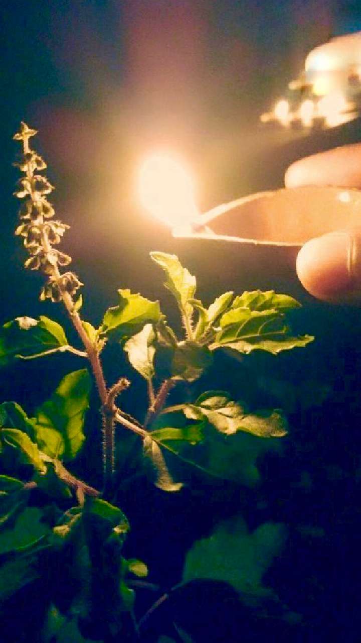 ਤੁਲਸੀ ਦੇ ਨੇੜੇ ਦੀਵਾ ਜਗਾਉਣਾ