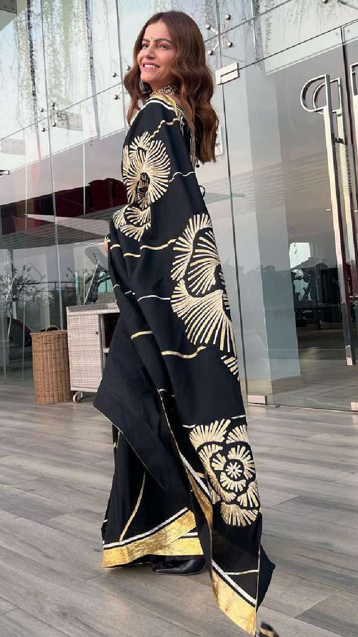 ਰੁਬੀਨਾ ਦਾ ਇਹ ਸਿਲਕ ਸਾੜ੍ਹੀ ਲੁੱਕ ਸ਼ਾਨਦਾਰ ਹੈ। ਤੁਸੀਂ ਇਸ ਸਾੜ੍ਹੀ ਦੇ ਨਾਲ ਹਰੇ ਰੰਗ ਦਾ ਸਟੋਨ ਚੋਕਰ ਪਹਿਨ ਸਕਦੇ ਹੋ। ਇਸ ਤੋਂ ਇਲਾਵਾ ਇਸ ਲੁੱਕ 'ਚ ਸਾਈਡ ਰੈਪ ਬਨ ਜਾਂ ਸਧਾਰਨ ਗਜਰਾ ਬਨ ਵਧੀਆ ਲੱਗੇਗਾ