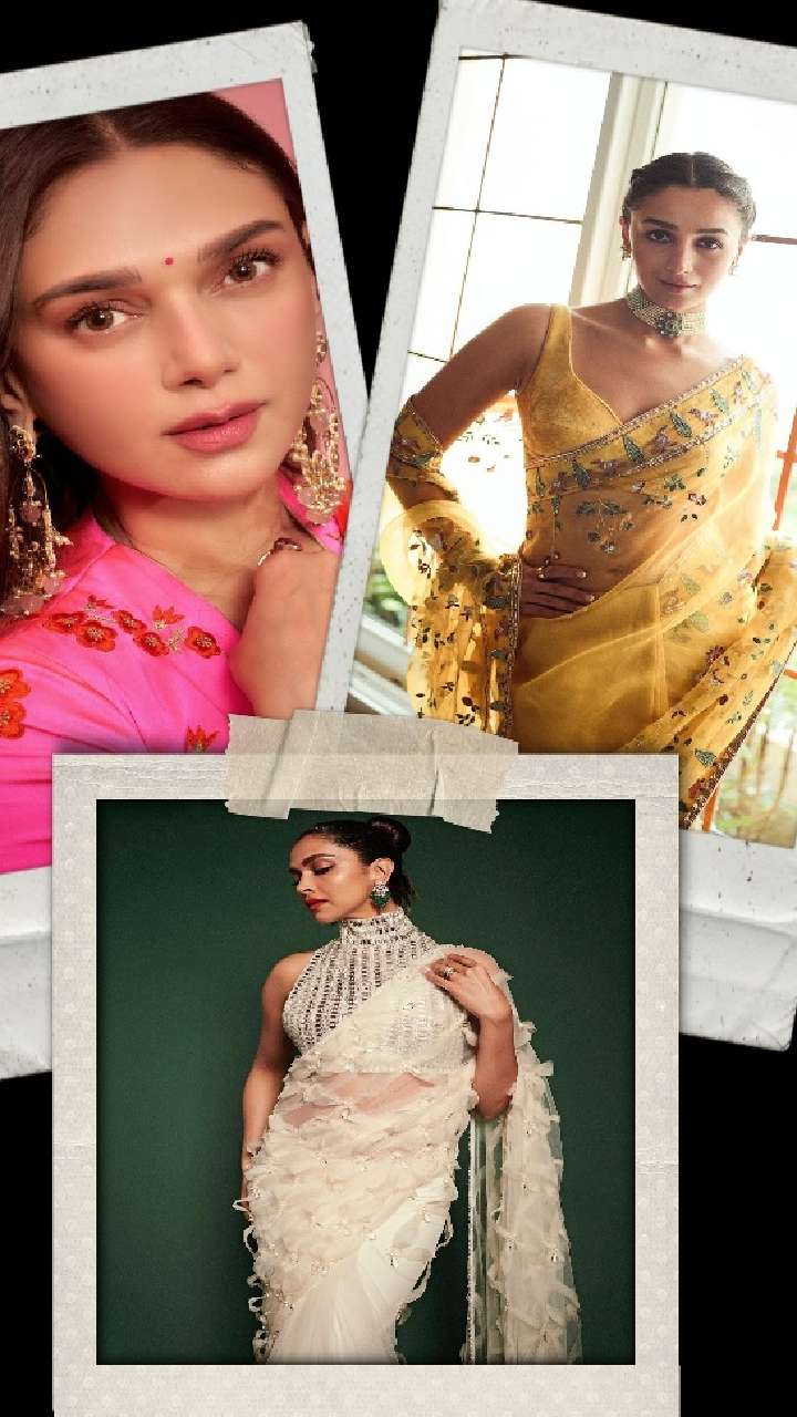 ਇਸ ਸੁਪਰ ਸਟਾਈਲਿਸ਼ ਸੁੰਦਰ ਸਾੜ੍ਹੀ ਲੁੱਕ ਵਿੱਚ, ਆਲੀਆ ਭੱਟ ਨੇ ਸਟ੍ਰੈਪੀ ਸਲੀਵਜ਼ ਡਿਜ਼ਾਈਨਰ ਨੇਕ ਬਲਾਊਜ਼ ਸਟਾਈਲ ਕੀਤਾ ਹੈ।