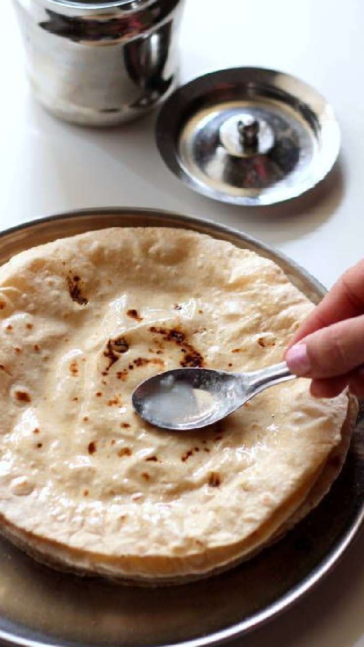 ਰੋਟੀ 'ਤੇ ਘਿਓ ਲਗਾਉਣਾ