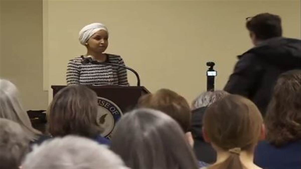 WATCH: Democratic U.S. Rep. Ilhan Omar sprayed with unknown liquid during town hall meeting in Minneapolis, Minnesota.